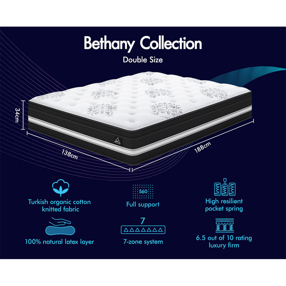 STARRY EUCALYPT Mattress Pocket Spring Double Size Latex Euro Top 34cm Bethany