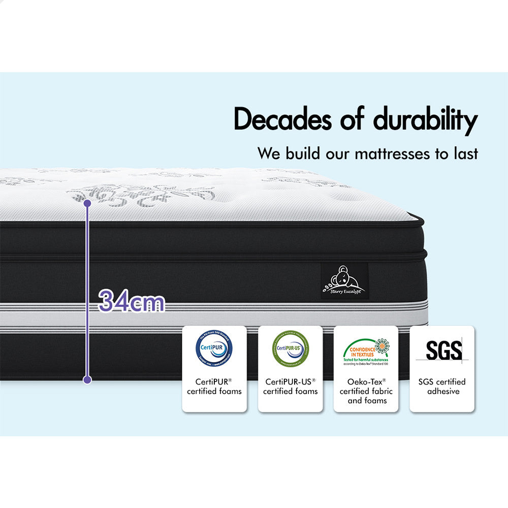 STARRY EUCALYPT Mattress Pocket Spring Queen Size Latex Euro Top 34cm Bethany