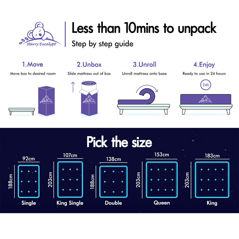 STARRY EUCALYPT Mattress Pocket Spring King Single Latex Euro Top 34cm 5 zone