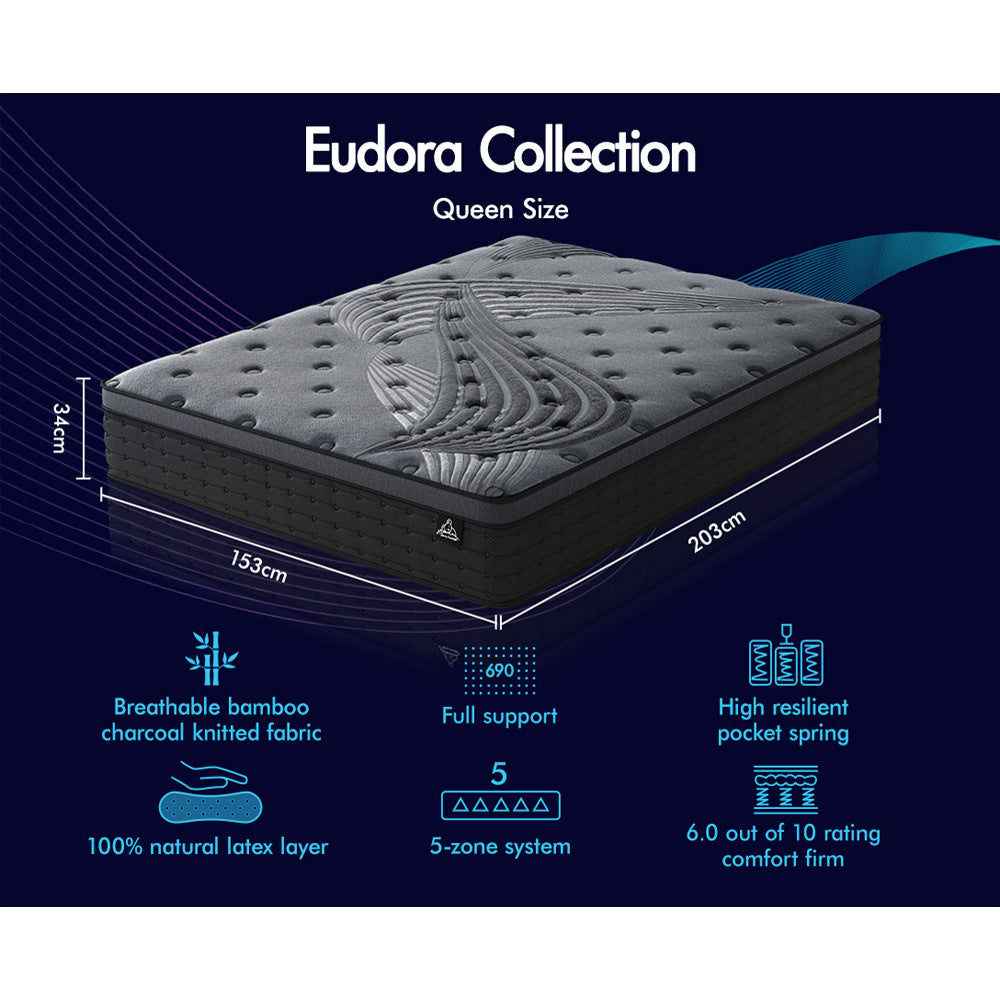STARRY EUCALYPT Mattress Pocket Spring Queen Size Latex Euro Top 34cm 5 zone