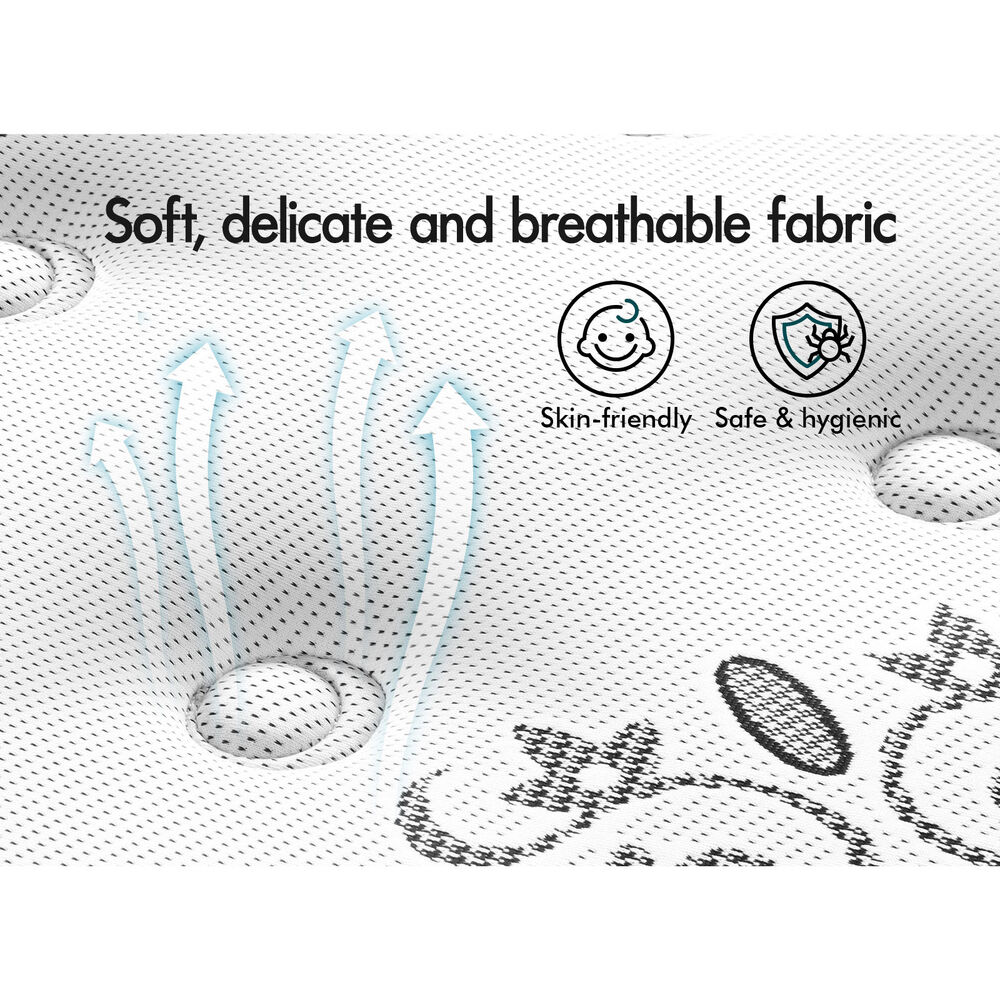 The mattress is topped with OEKO-Tex certified soft knitted fabric. This fabric follows your body movements, optimizing your comfort level. To offer excellent pressure-relieving capabilities, it features a sumptuous memory foam layer and high-resilience egg crate foam. These components enhance blood circulation in muscles and skin, allowing you to unwind completely.