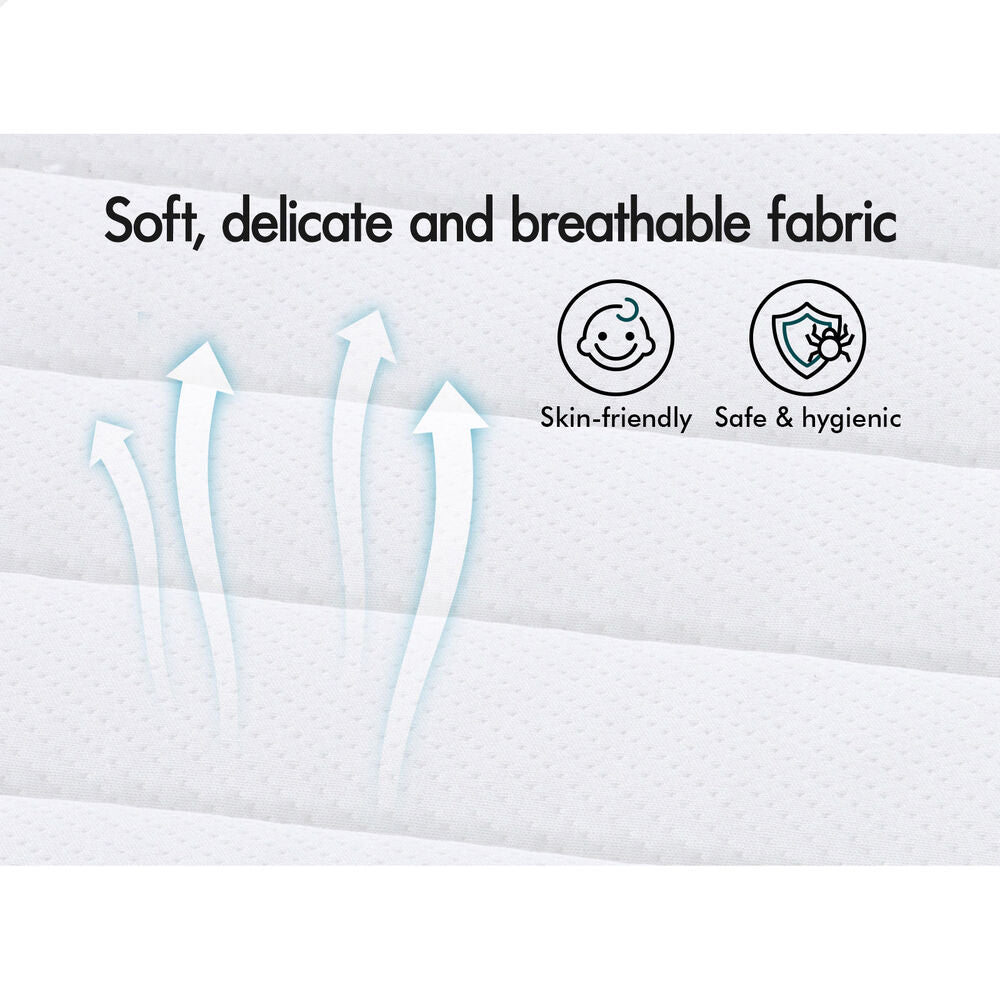 The mattress is topped with OEKO-Tex certified soft knitted fabric. This fabric follows your body movements, optimizing your comfort level. To offer excellent pressure-relieving capabilities, it features a sumptuous memory foam layer and high-resilience egg crate foam. These components enhance blood circulation in muscles and skin, allowing you to unwind completely.