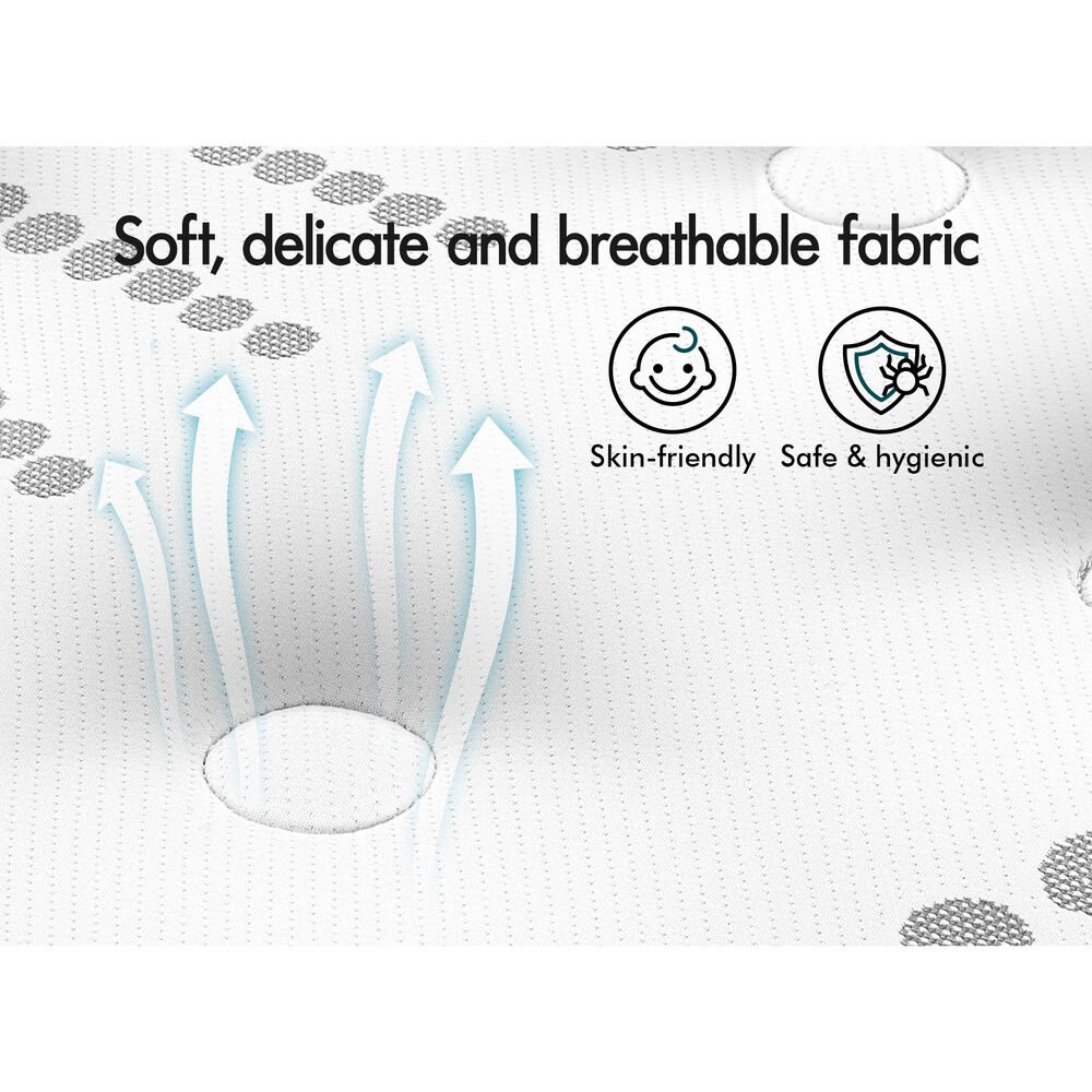 The mattress is topped with OEKO-Tex certified soft knitted fabric. This fabric follows your body movements, optimizing your comfort level. To offer excellent pressure-relieving capabilities, it features a sumptuous memory foam layer and high-resilience egg crate foam. These components enhance blood circulation in muscles and skin, allowing you to unwind completely.