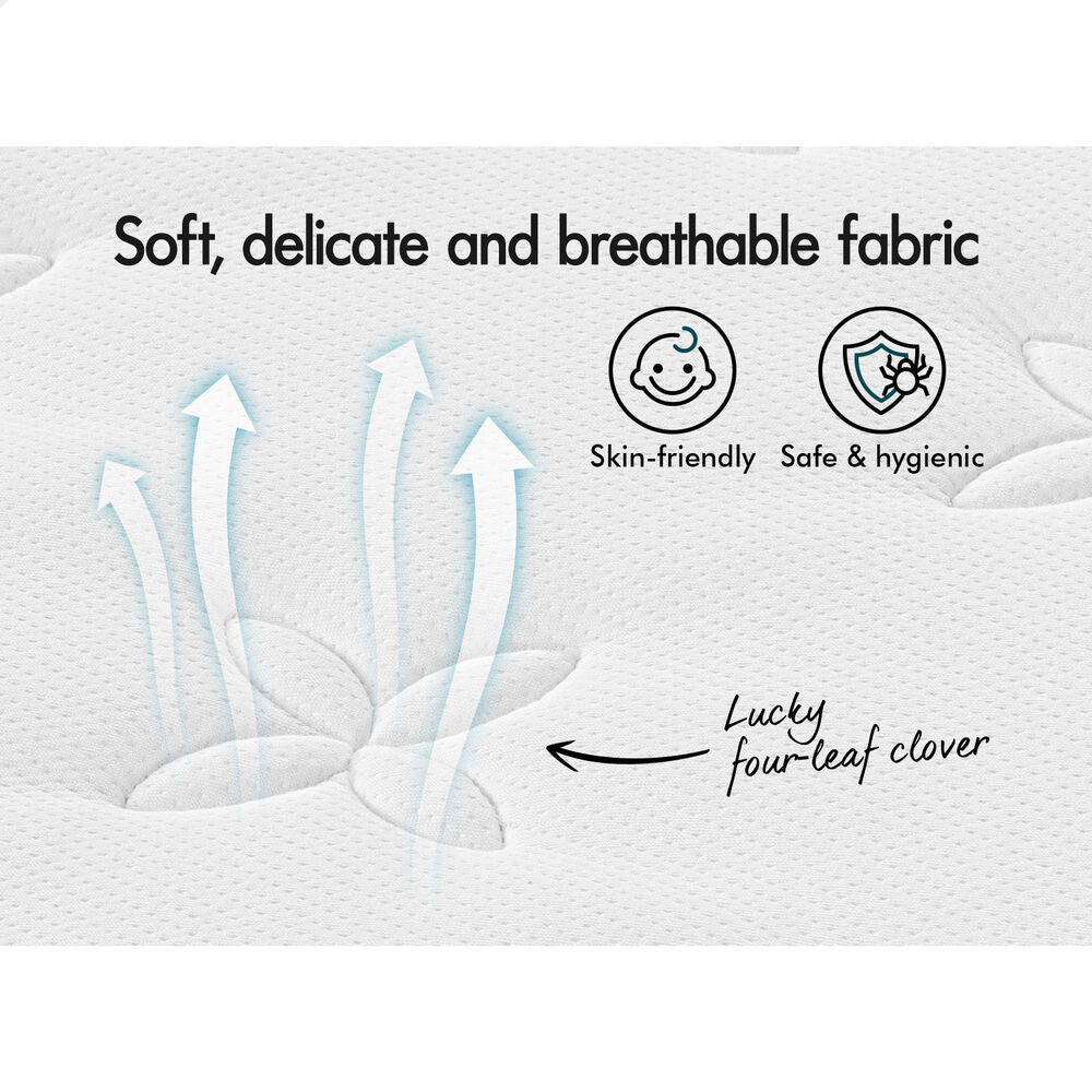 The mattress is topped with OEKO-Tex certified soft knitted fabric. This fabric follows your body movements, optimizing your comfort level. To offer excellent pressure-relieving capabilities, it features a sumptuous memory foam layer and high-resilience egg crate foam. These components enhance blood circulation in muscles and skin, allowing you to unwind completely.