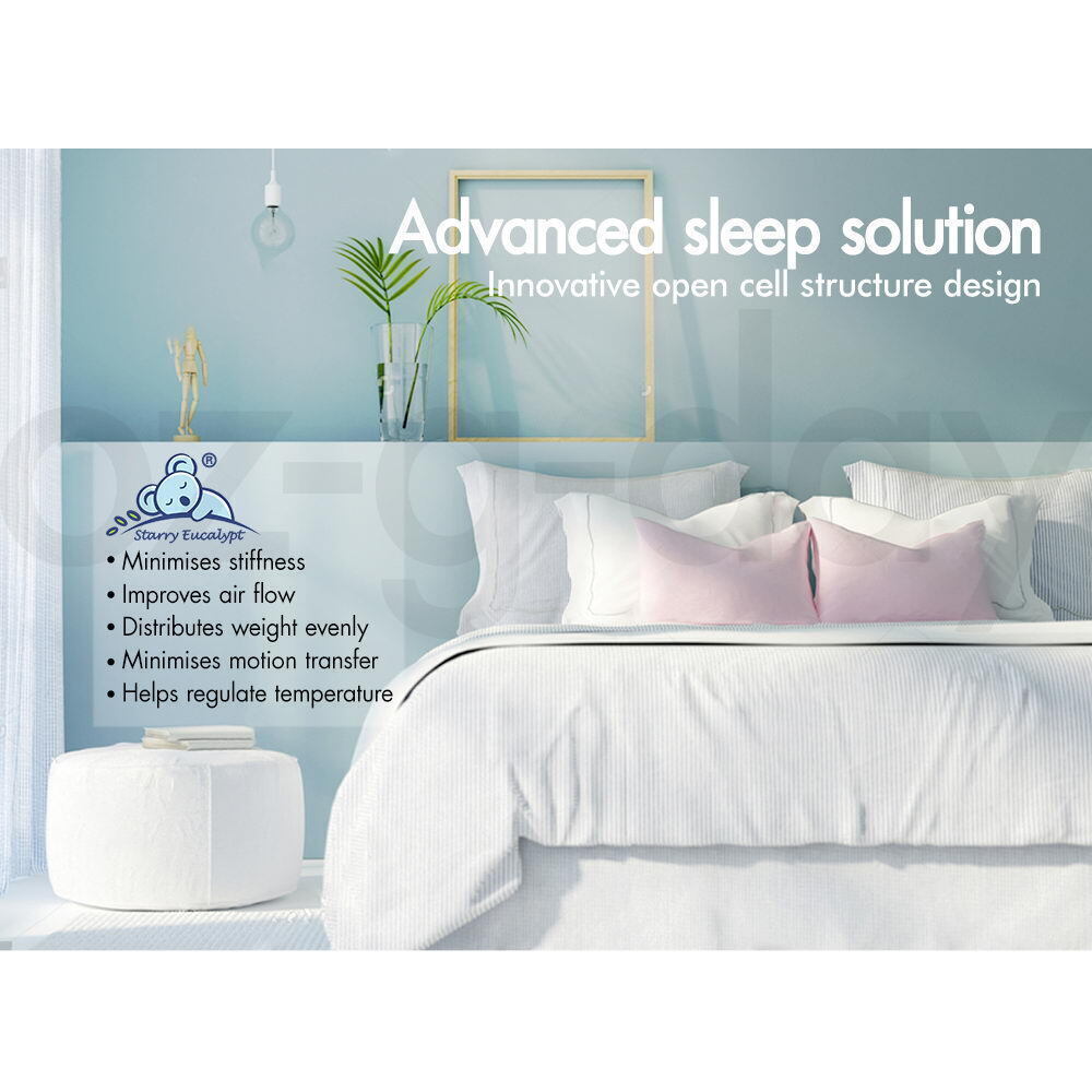 Upgrade your old mattress to luxury enjoyment; take out the topper for your casual guest; keep your noisy bunk bed silent; and take the topper with you in your bumpy camping trip. Starry Eucalypt, "A good night sleep, a good day journey".