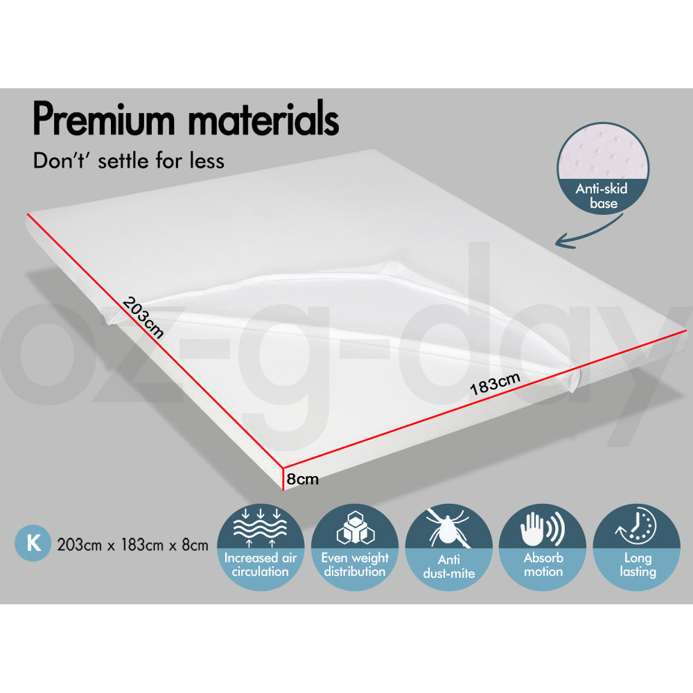 STARRY EUCALYPT Memory Foam Mattress Topper KING Size 8CM Visco Bed Cover