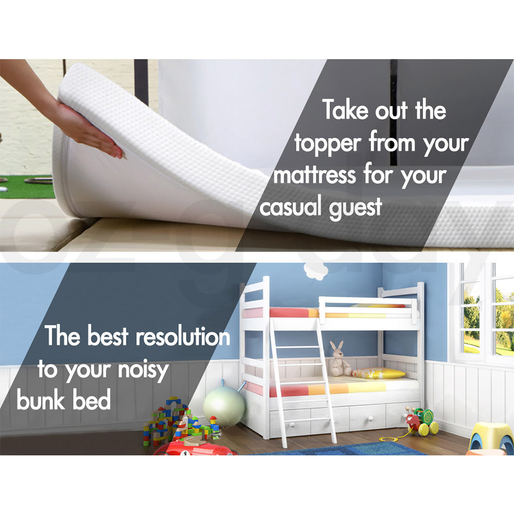 Upgrade your old mattress to luxury enjoyment; take out the topper for your casual guest; keep your noisy bunk bed silent; and take the topper with you in your bumpy camping trip. Starry Eucalypt, "A good night sleep, a good day journey".