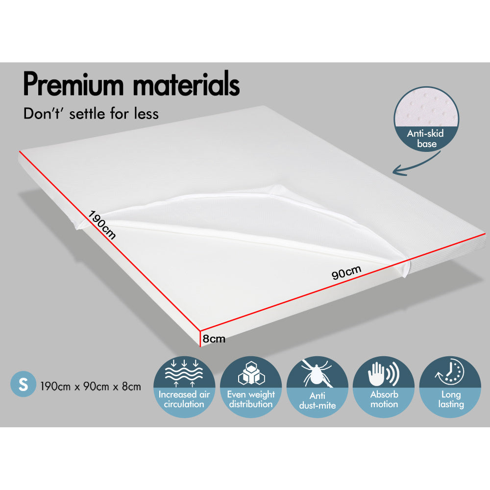 STARRY EUCALYPT Memory Foam Mattress Topper SINGLE Size 8CM Visco Bed Cover