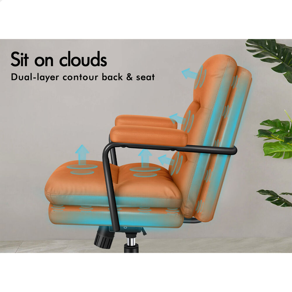 The modern concise design of this office swivel chair will soften any interior or decor you may currently have in your home or office. Upholstered in premium PU leather, the dual-layer seat and backrest are richly padded with high-resilience foam. The padded seat provides adequate support in the right places and infinite comfort whenever you want to rest and sit in the chair. Its ergonomic flared armrests design cradle your arms in a natural position, relieving unnecessary shoulder and arm strain and staying at your peak for long periods of time in optimal comfort.
