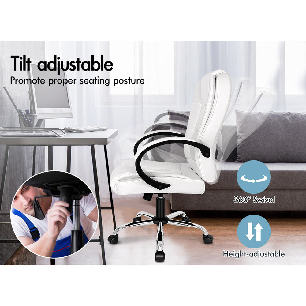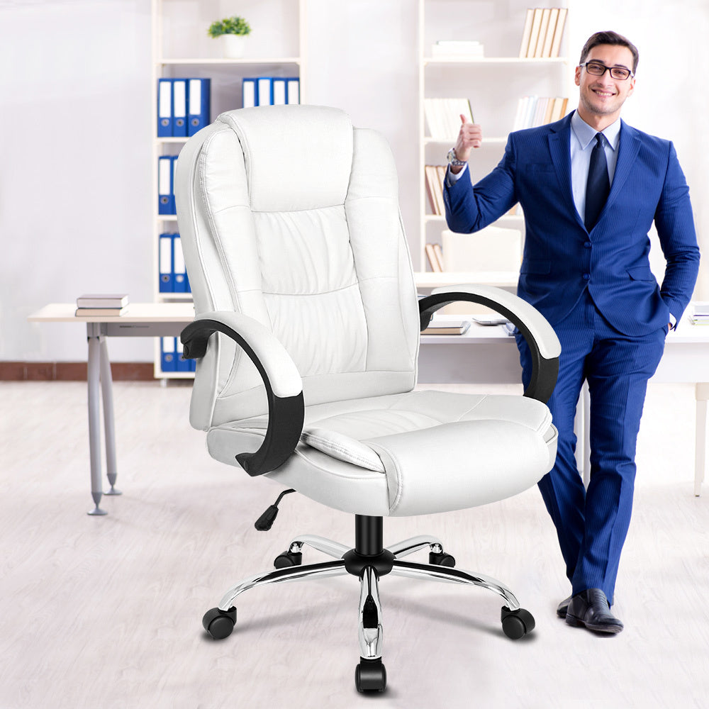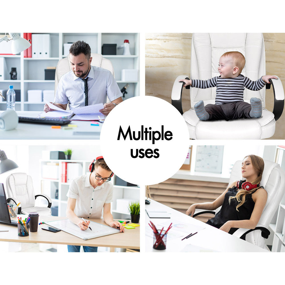 ALFORDSON Office Chair Executive PU Leather Computer Gaming Racer White Seat