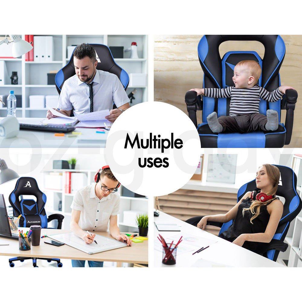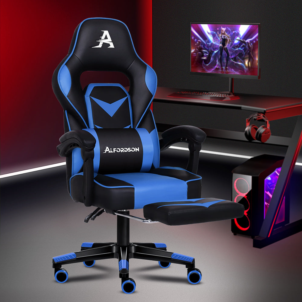 ALFORDSON Gaming Chair Office Seat Thick Padding Footrest Executive Racing Blue