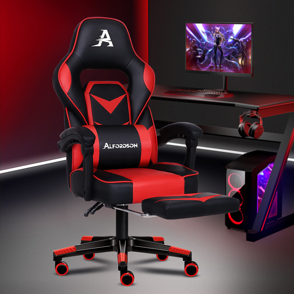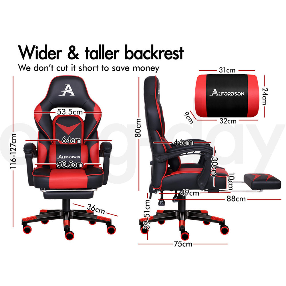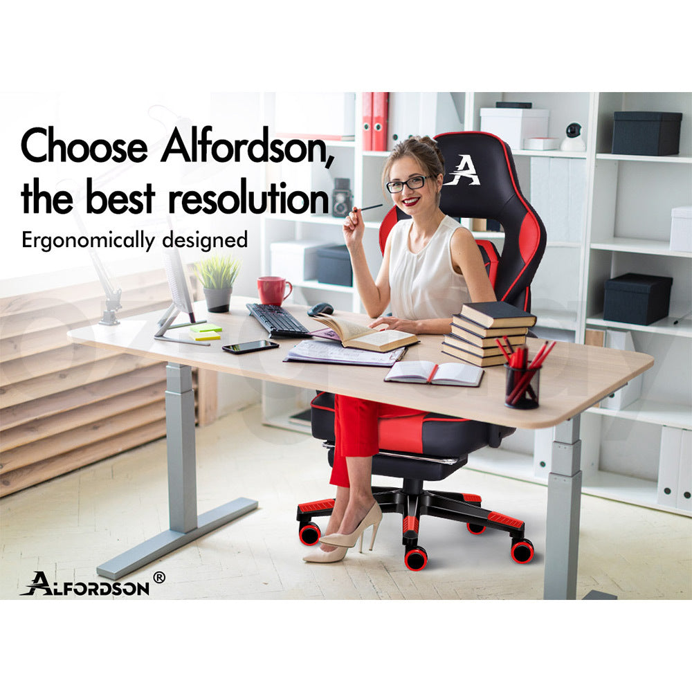 ALFORDSON Gaming Chair Office Seat Thick Padding Footrest Executive Racing Red