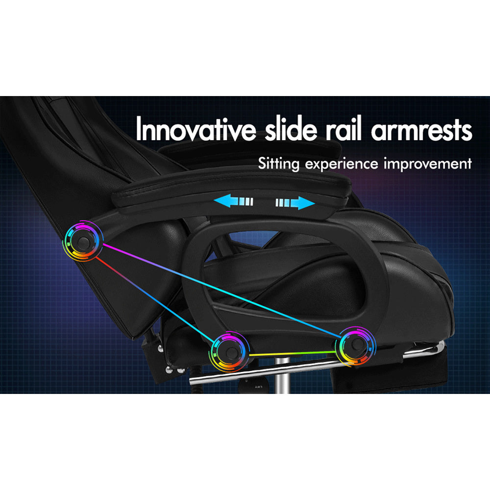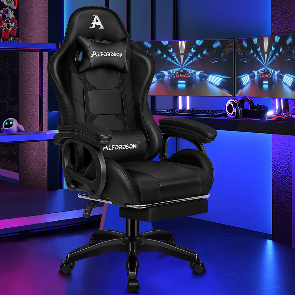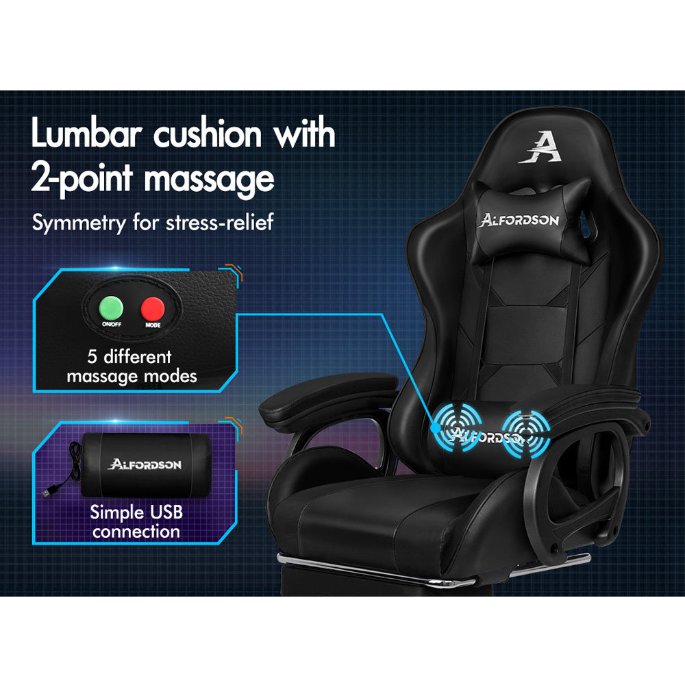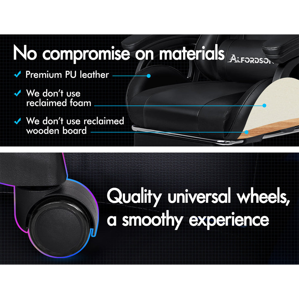ALFORDSON Gaming Office Chair Racing Massage Computer Seat Footrest Leather Black