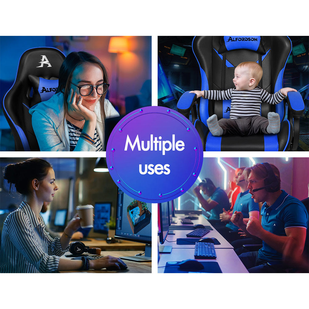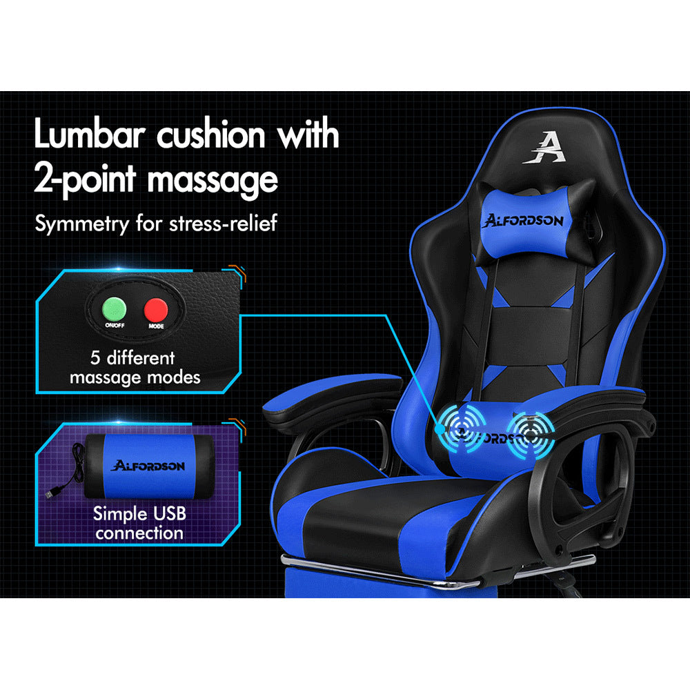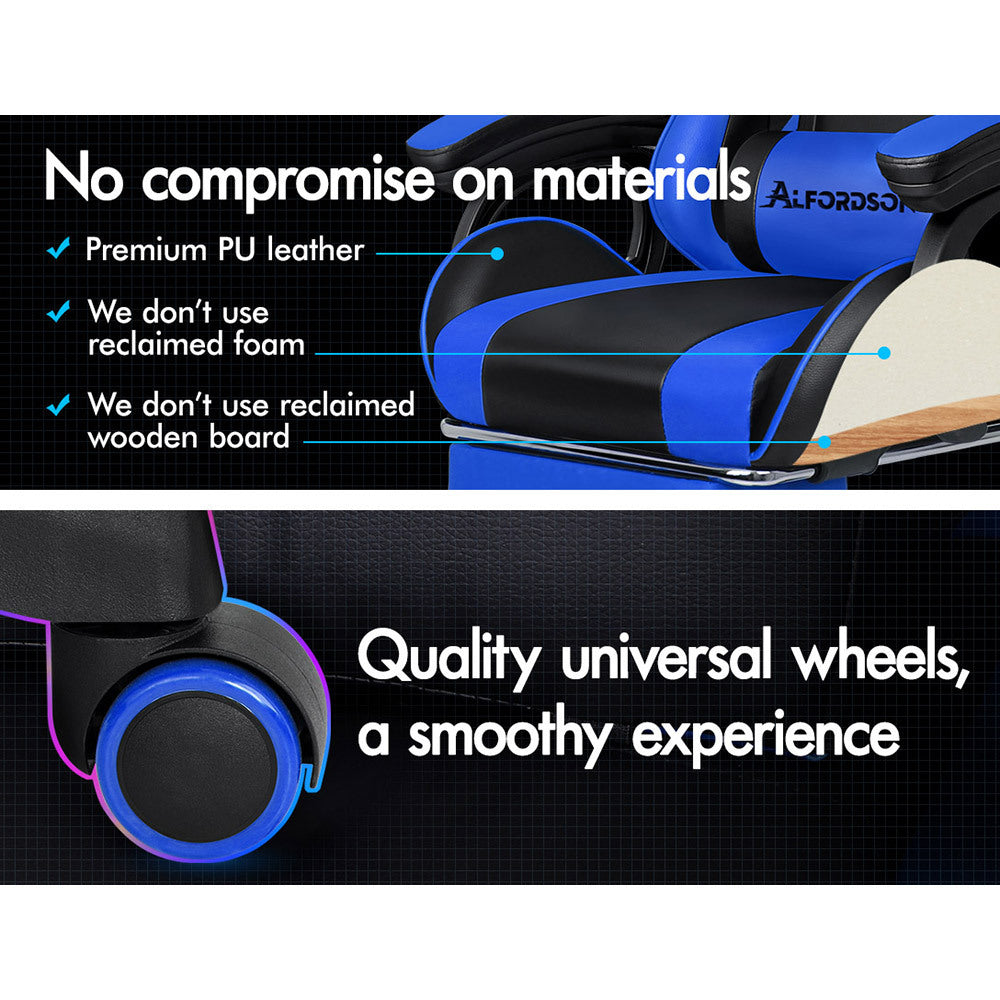 ALFORDSON Gaming Office Chair Massage Racing Computer Seat Footrest Leather Blue