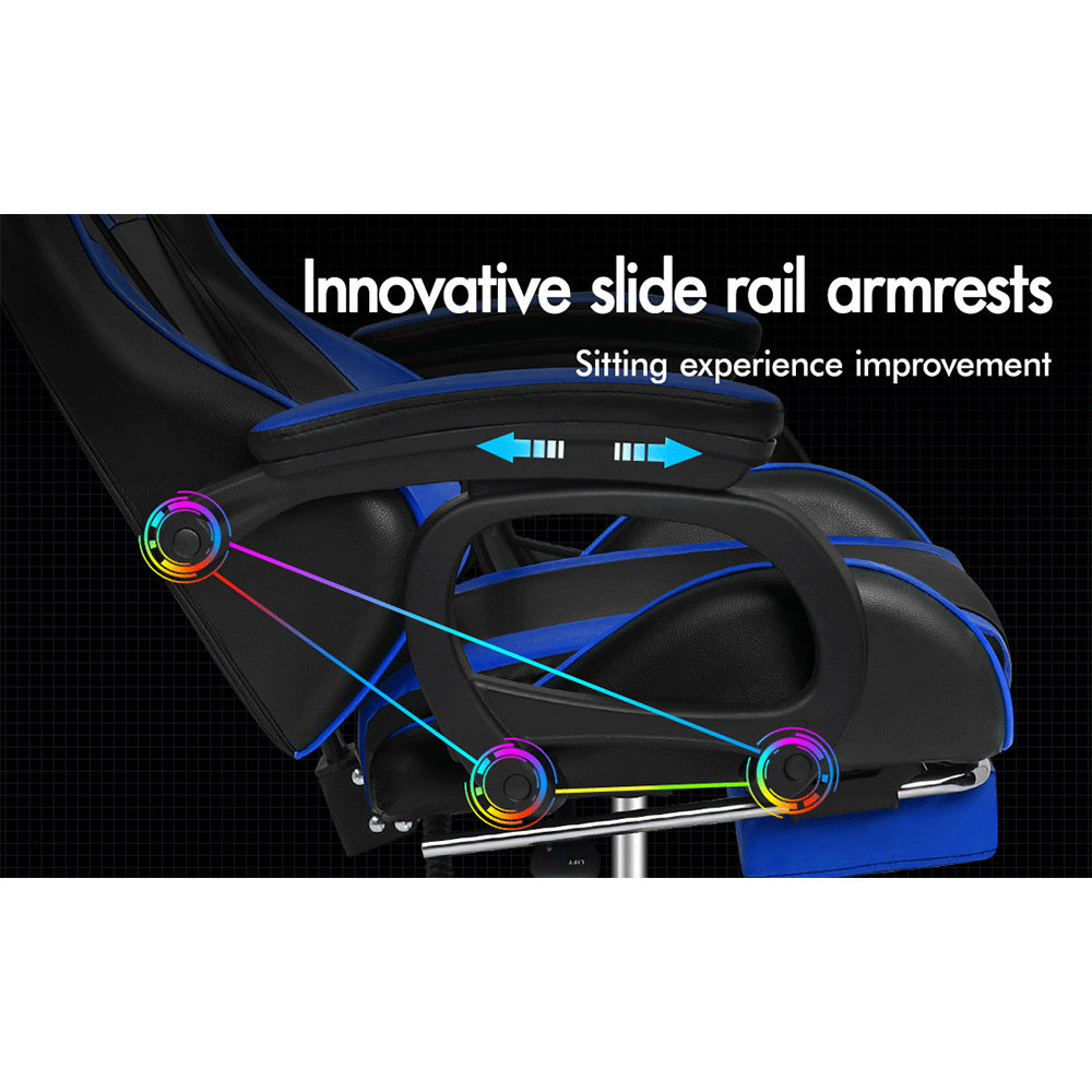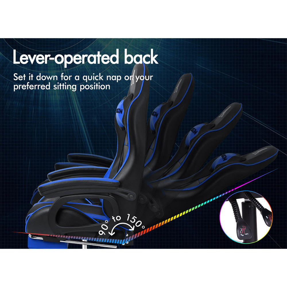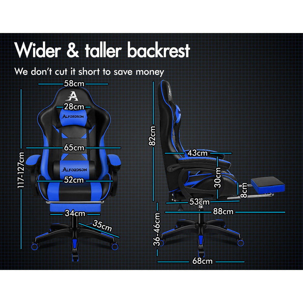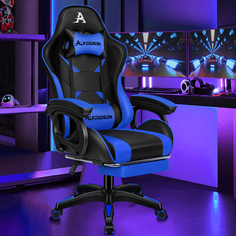 ALFORDSON Gaming Office Chair Massage Racing Computer Seat Footrest Leather Blue