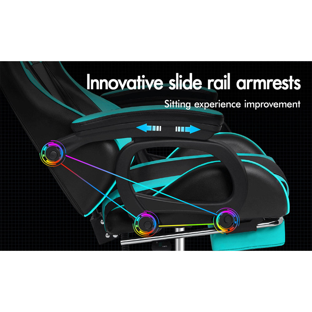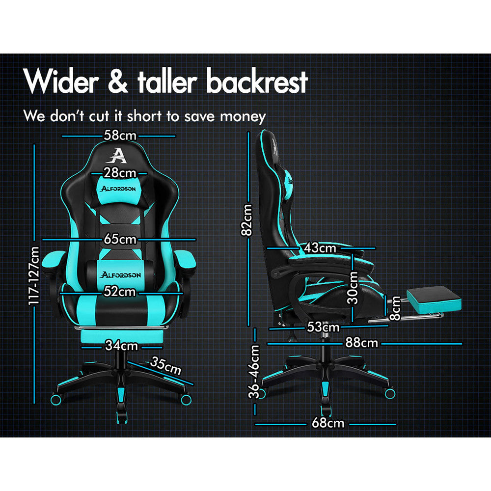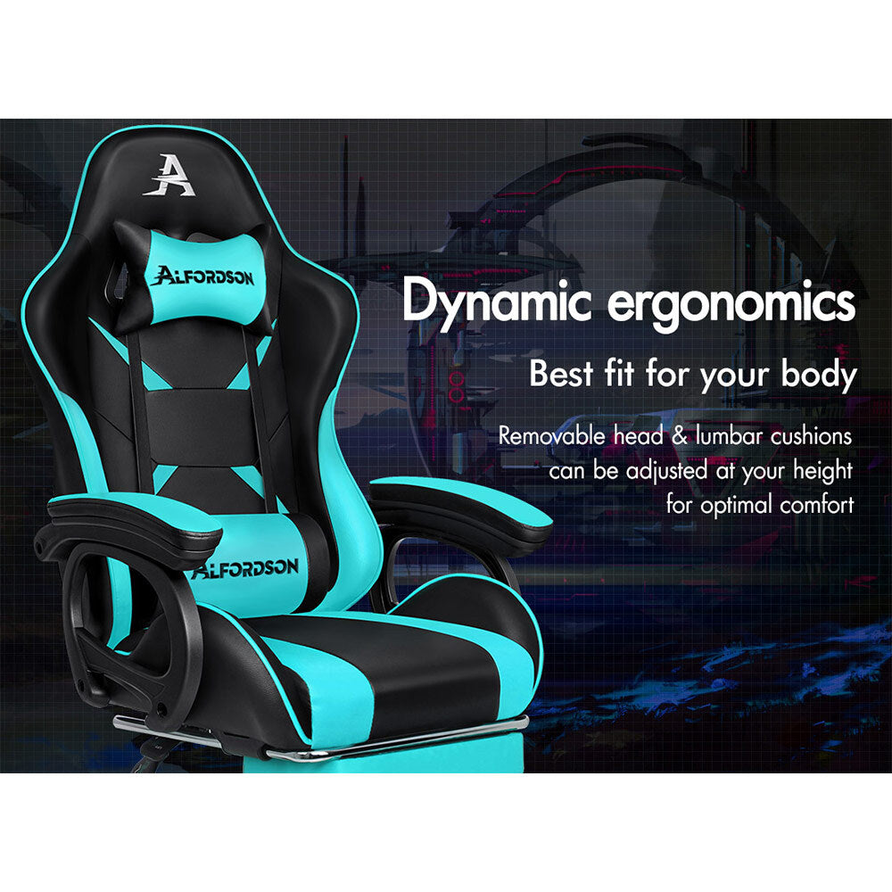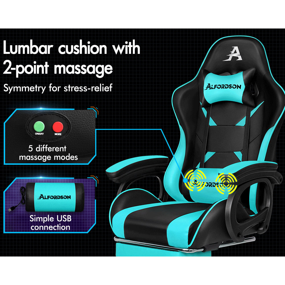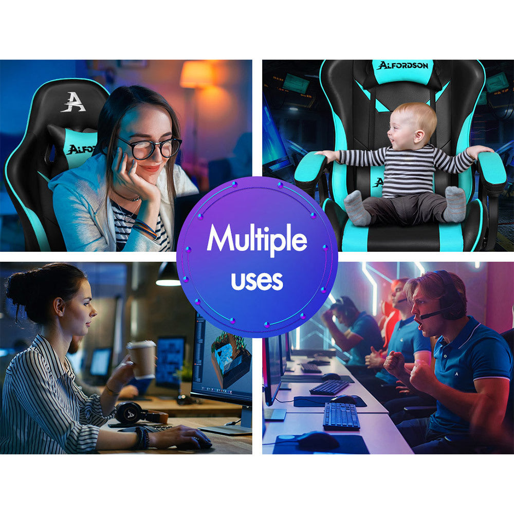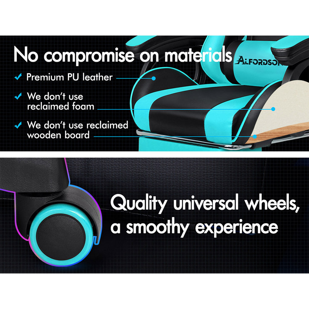 ALFORDSON Gaming Office Chair Massage Racing Computer Seat Footrest Leather Cyan