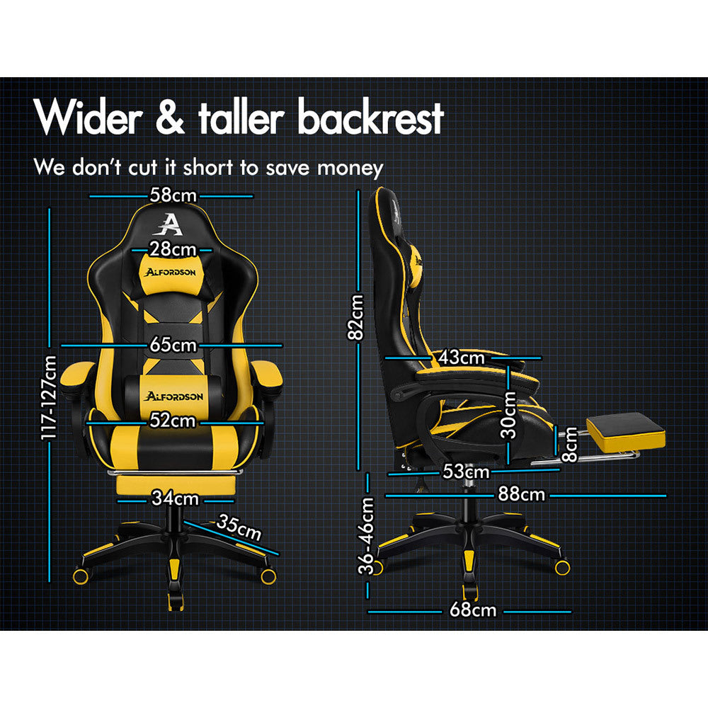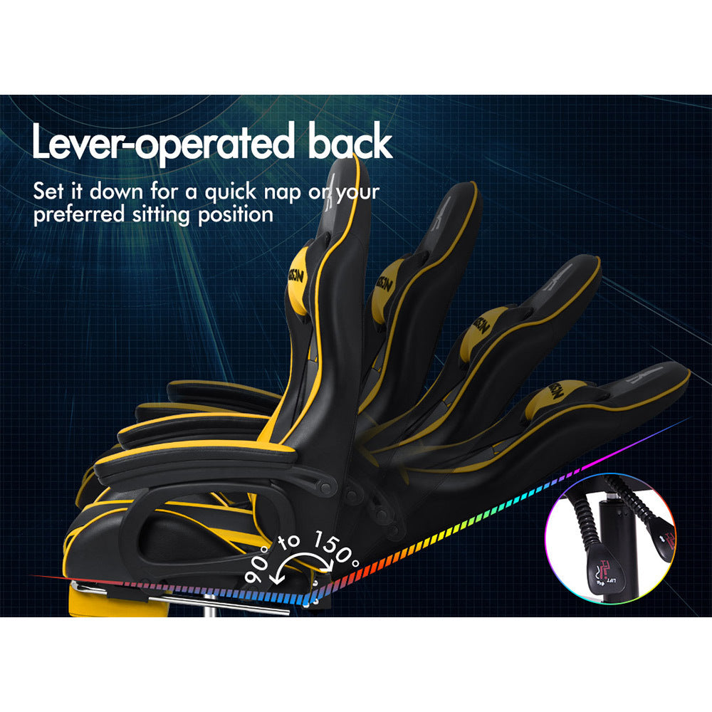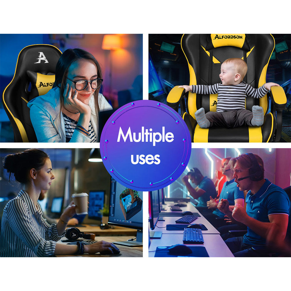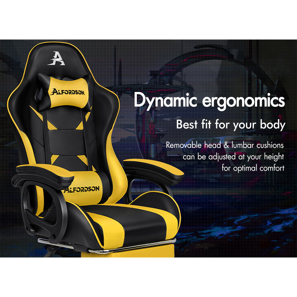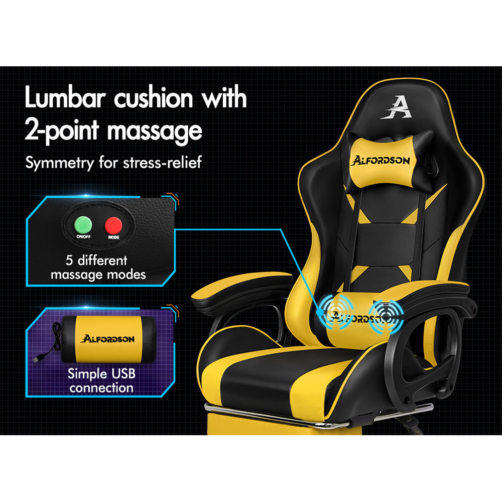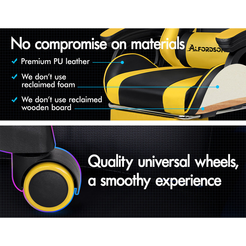 ALFORDSON Gaming Office Chair Massage Racing Computer Seat Footrest Leather Yellow