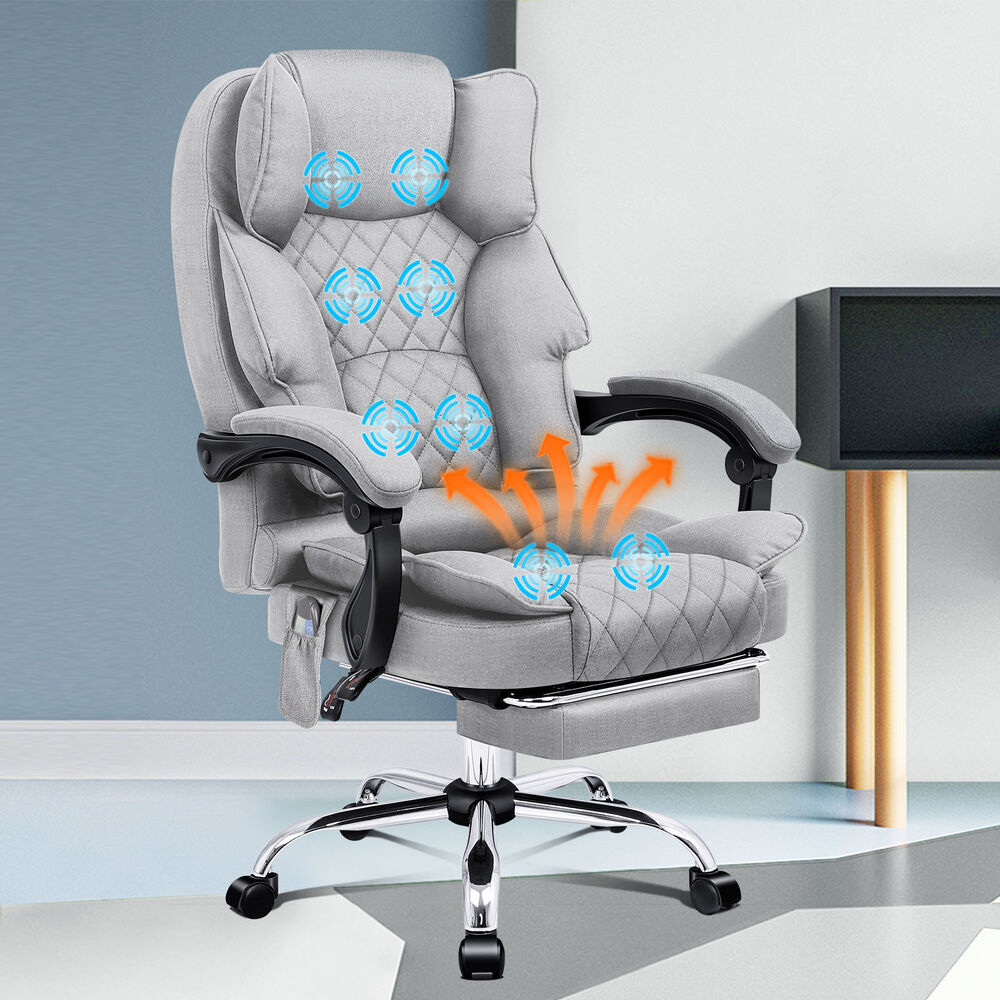 Crafted with innovation in mind, we upgraded the chair with 8 massage points and gentle seat heat function, allows you to work at your peak for long periods of time in optimal comfort. Built with premium linen fabric, generous foam paddings and ergonomically-friendly design, our chair provides your entire body with ample support in all the right places. The chair perfectly combines both comfort and style.