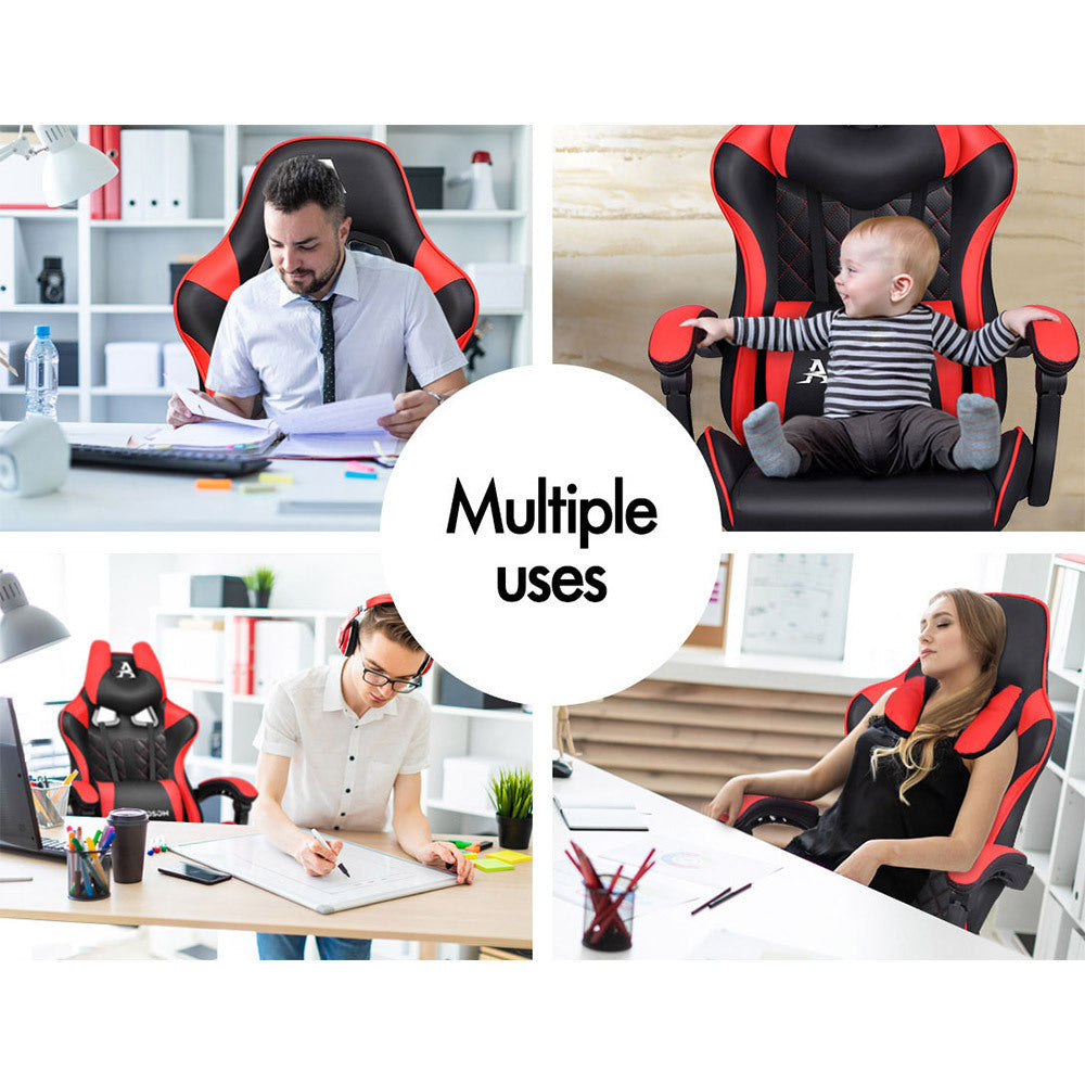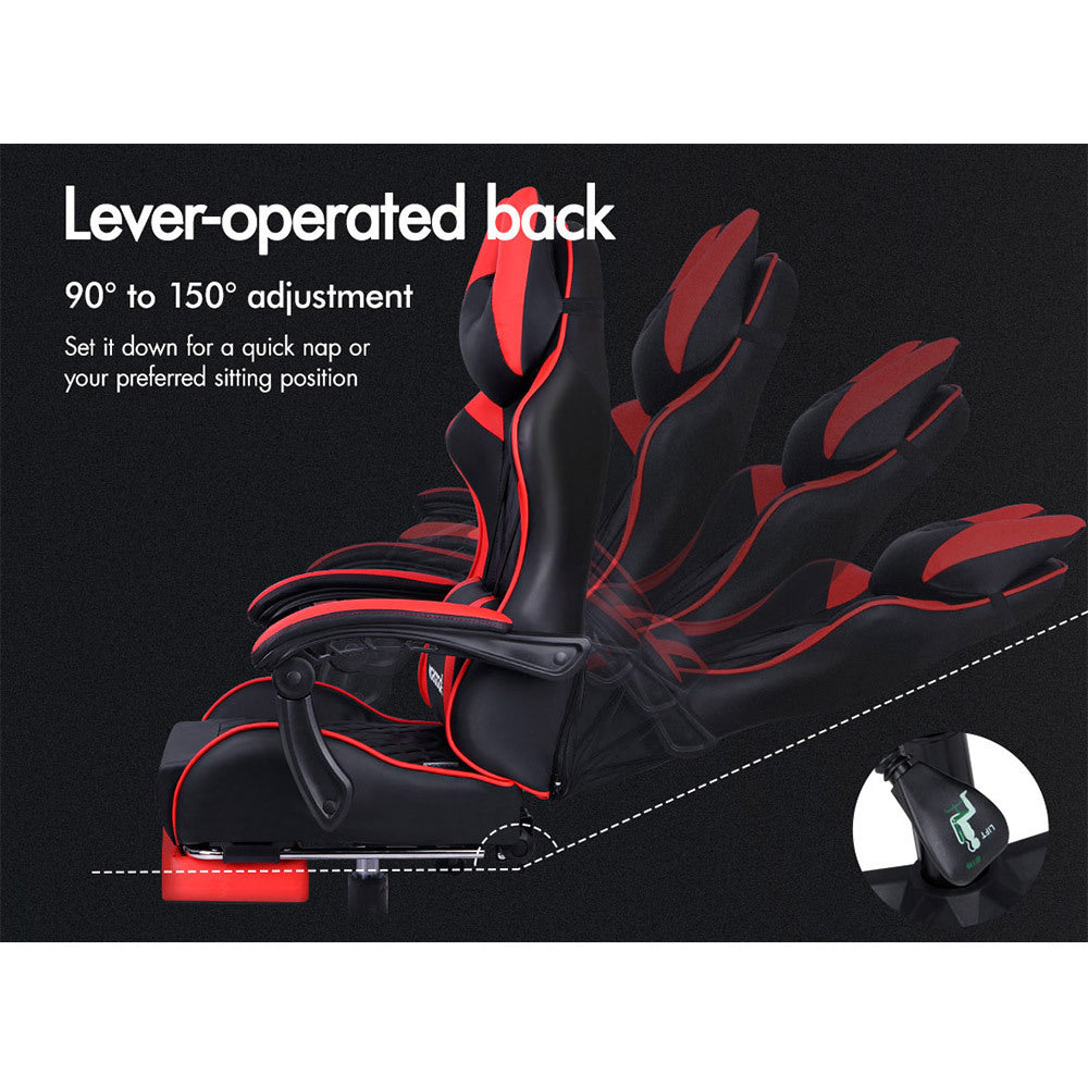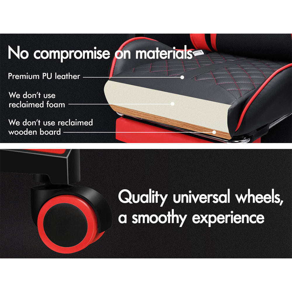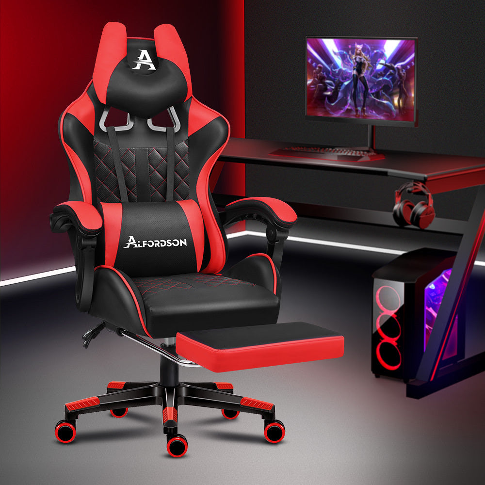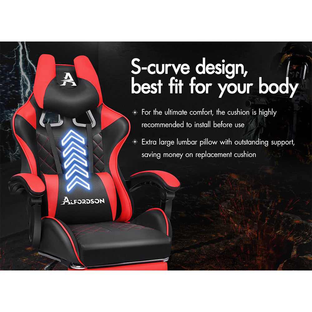 ALFORDSON Gaming Chair Office Racer Large Lumbar Cushion Footrest Seat Leather