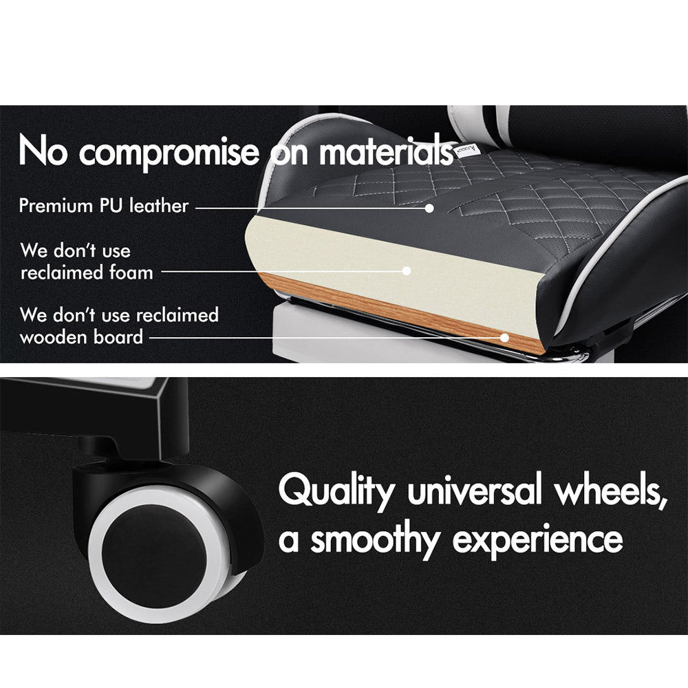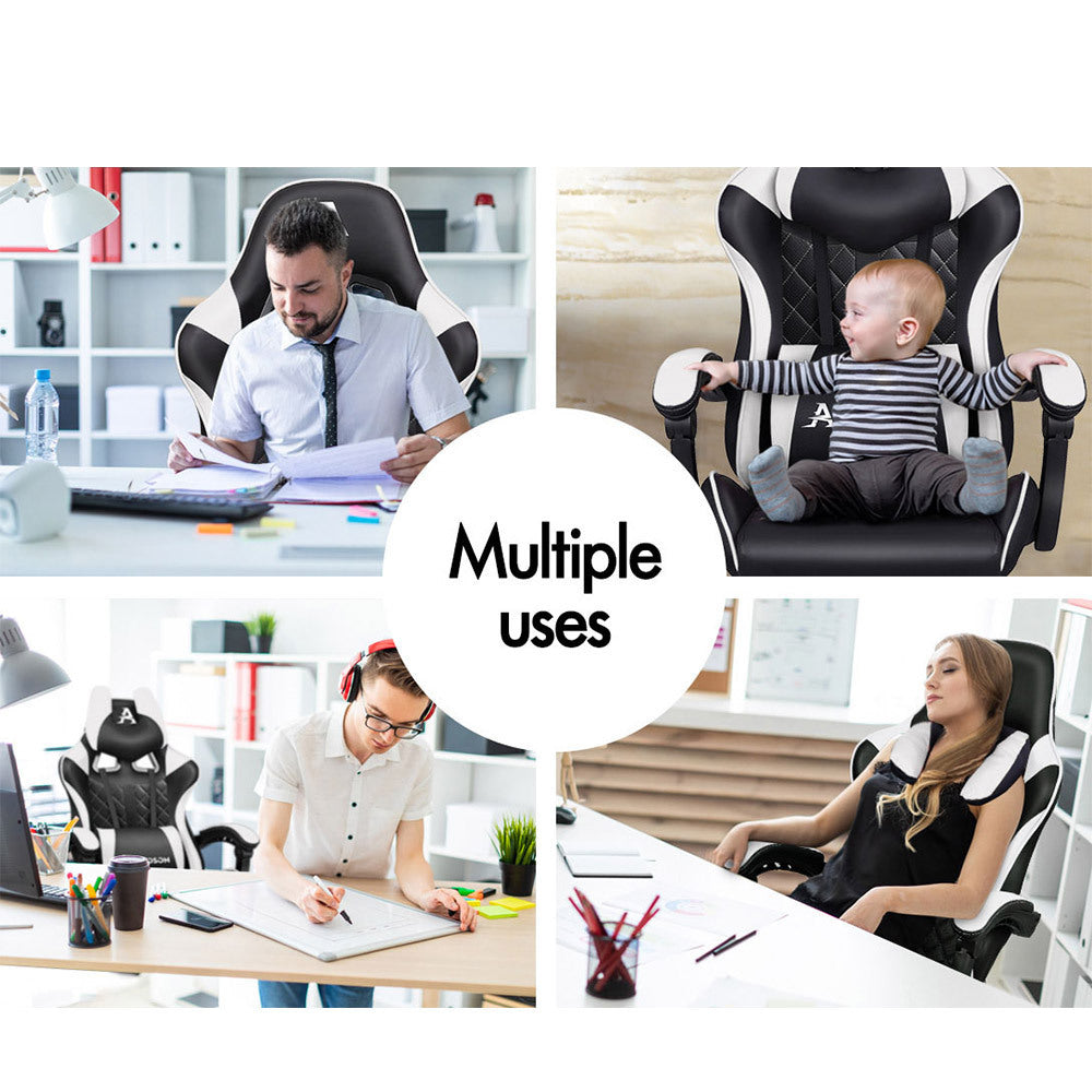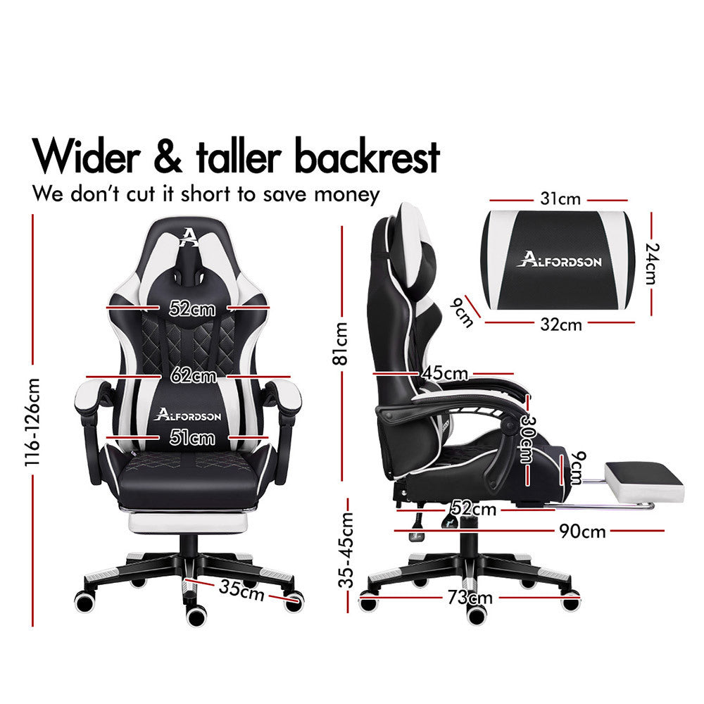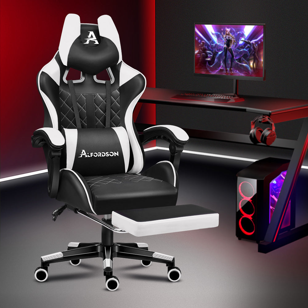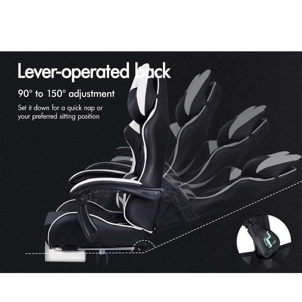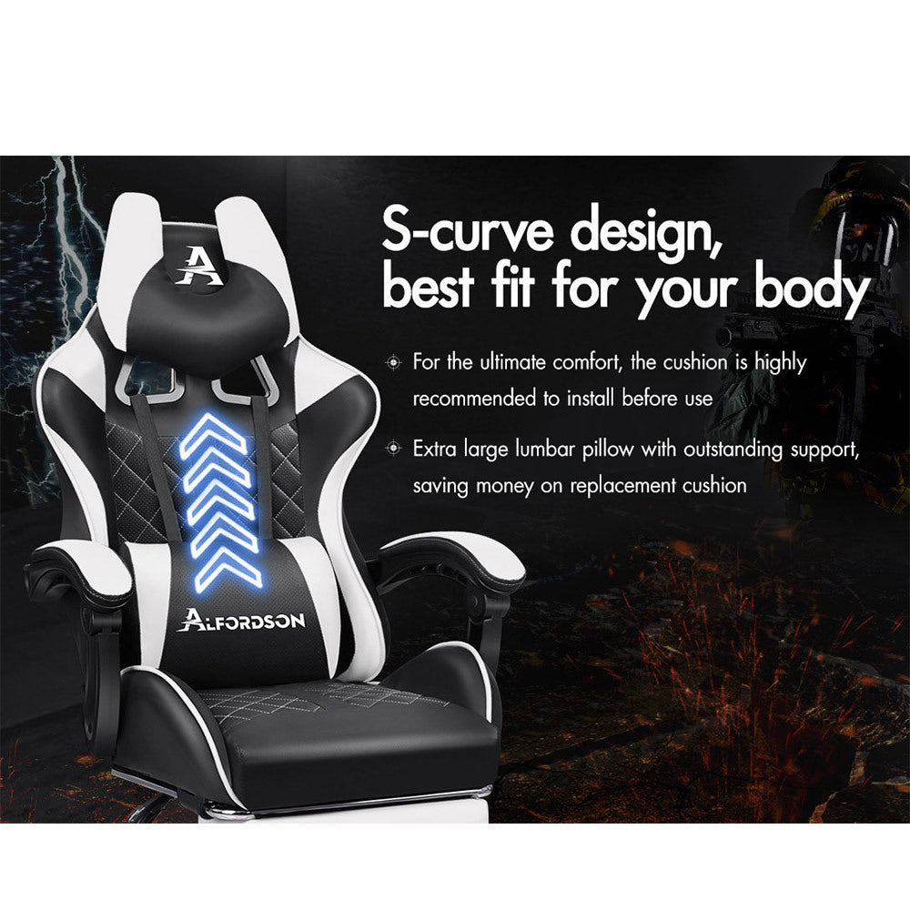 ALFORDSON Gaming Chair Office Racer Large Lumbar Cushion Footrest Seat Leather