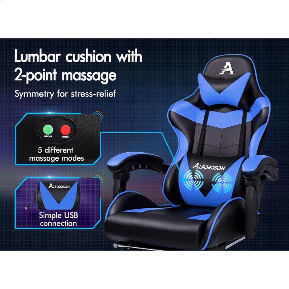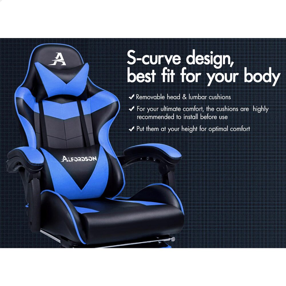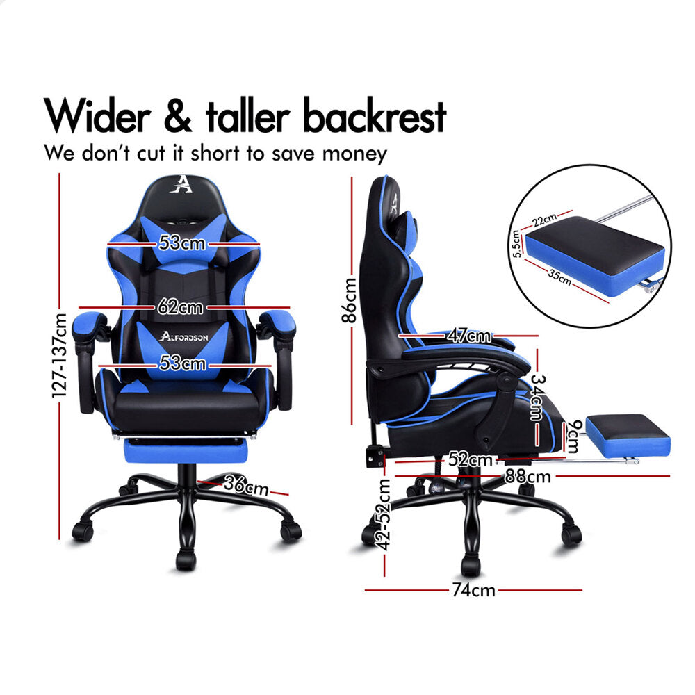 Alfordson Gaming Chair Office Executive Racing Footrest Seat PU Leather Blue