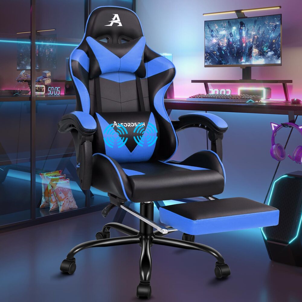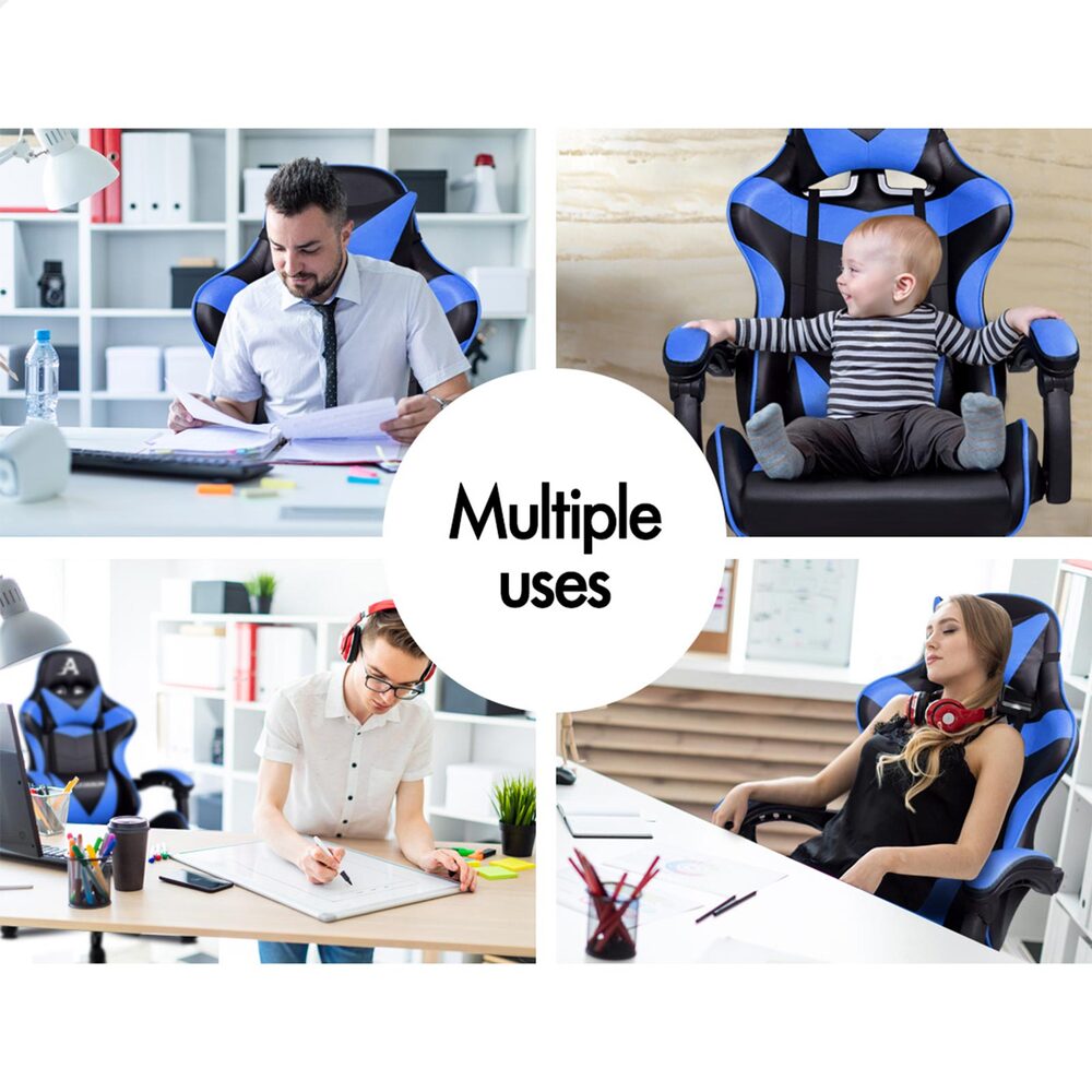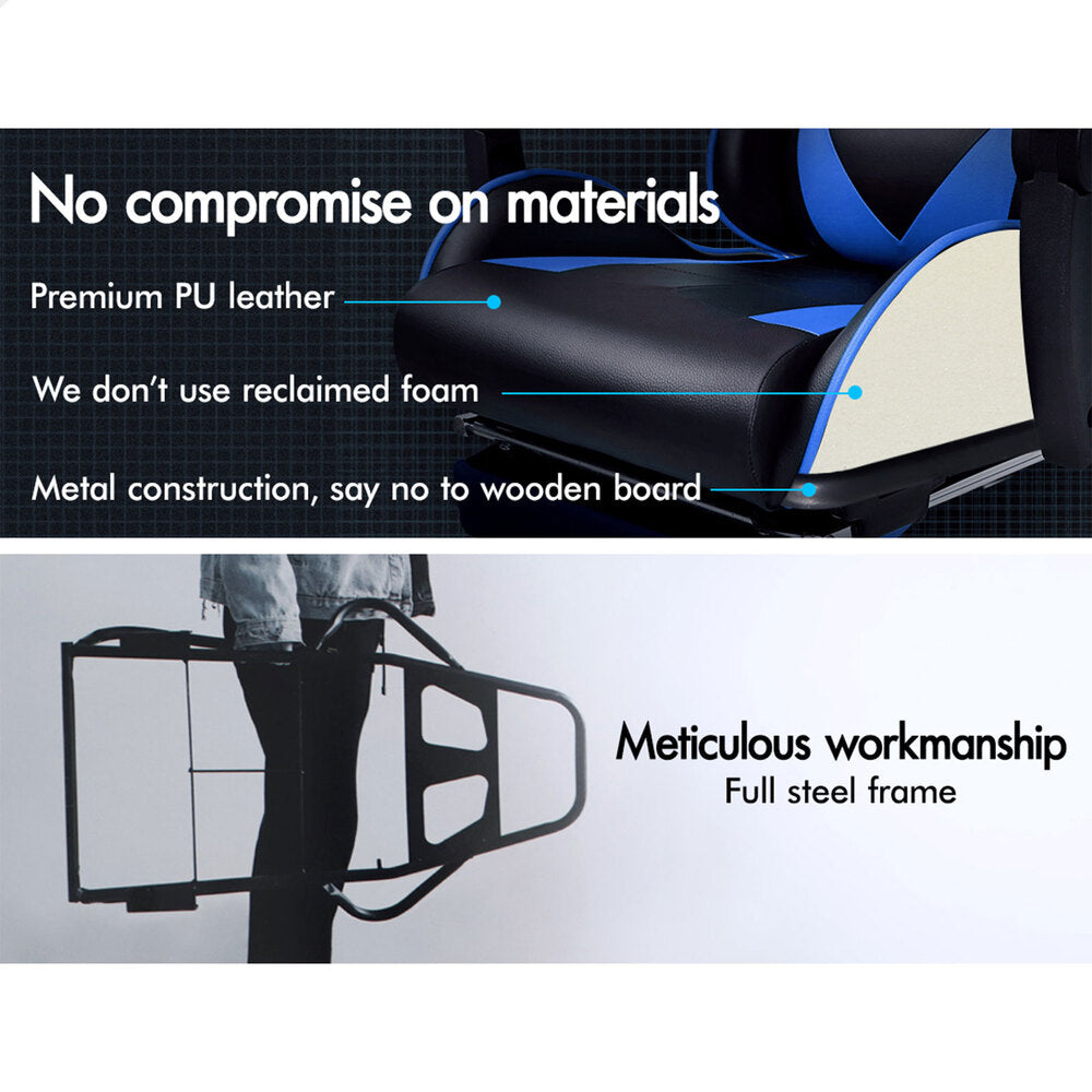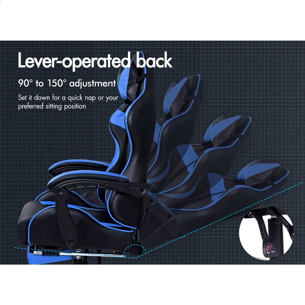 Alfordson Gaming Chair Office Executive Racing Footrest Seat PU Leather Blue