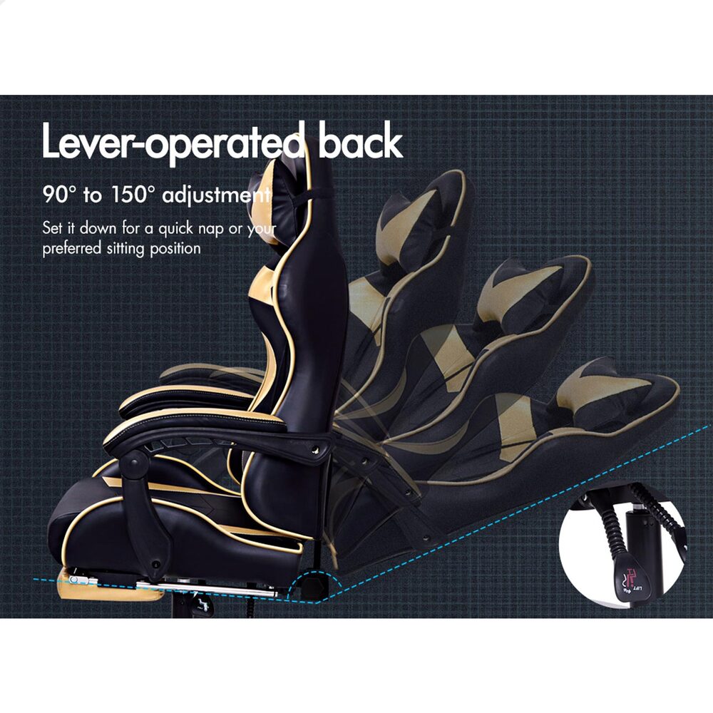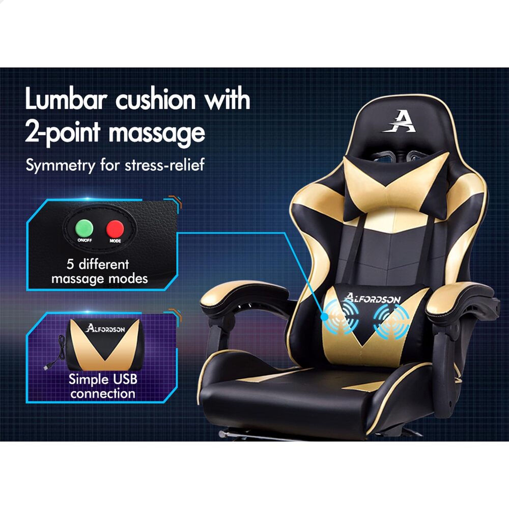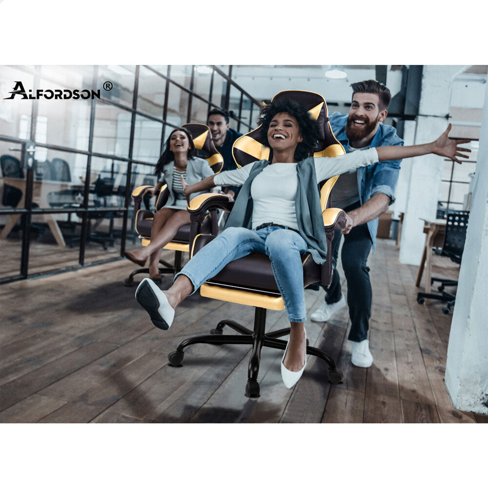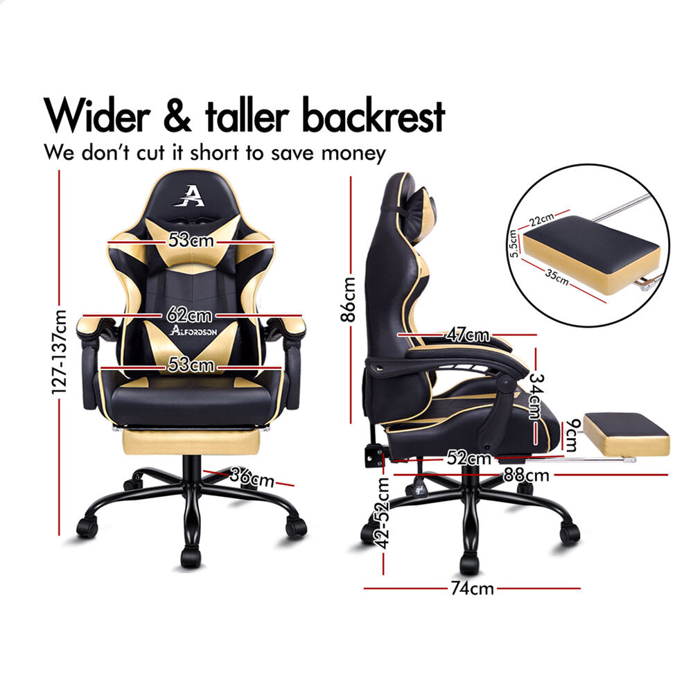 Alfordson Gaming Chair Office Executive Racing Footrest Seat PU Leather Gold