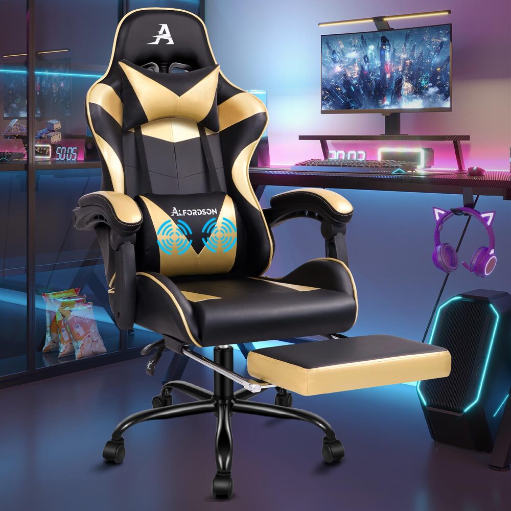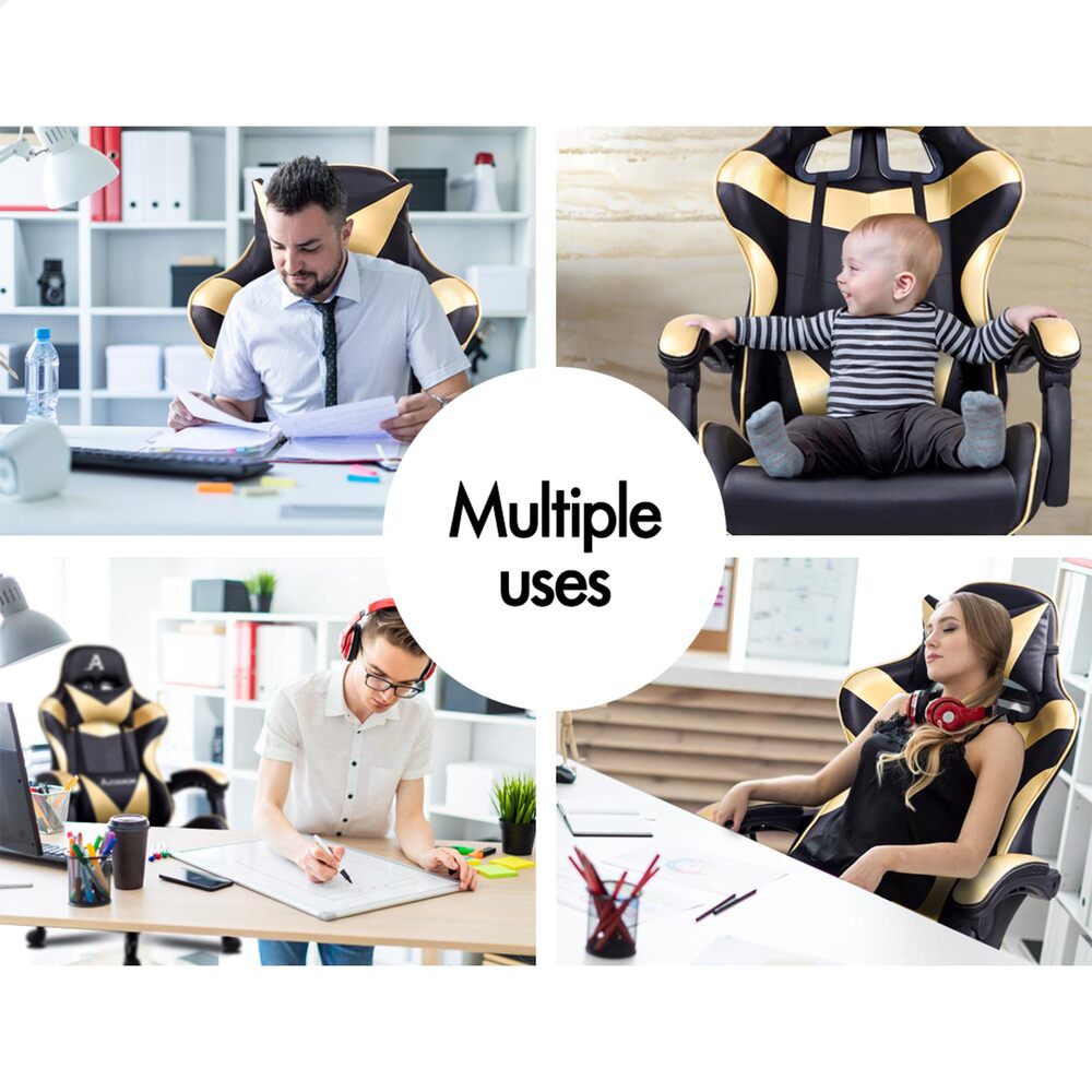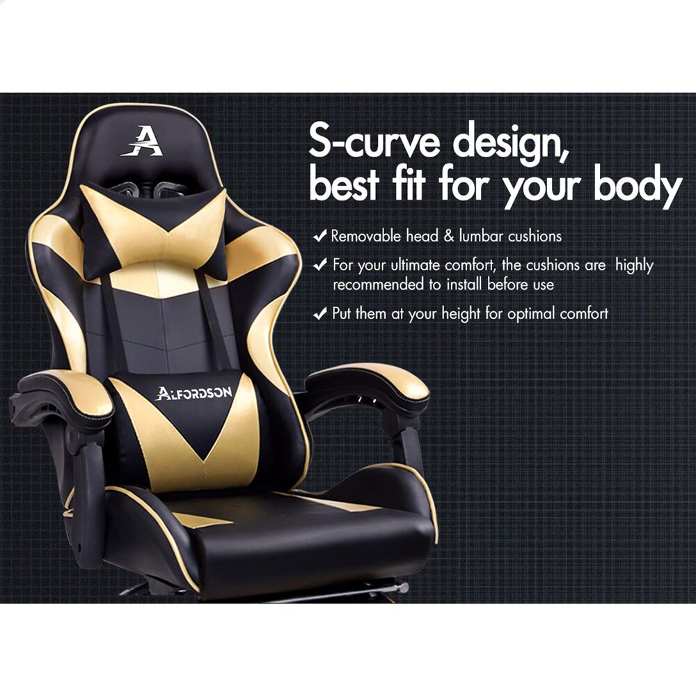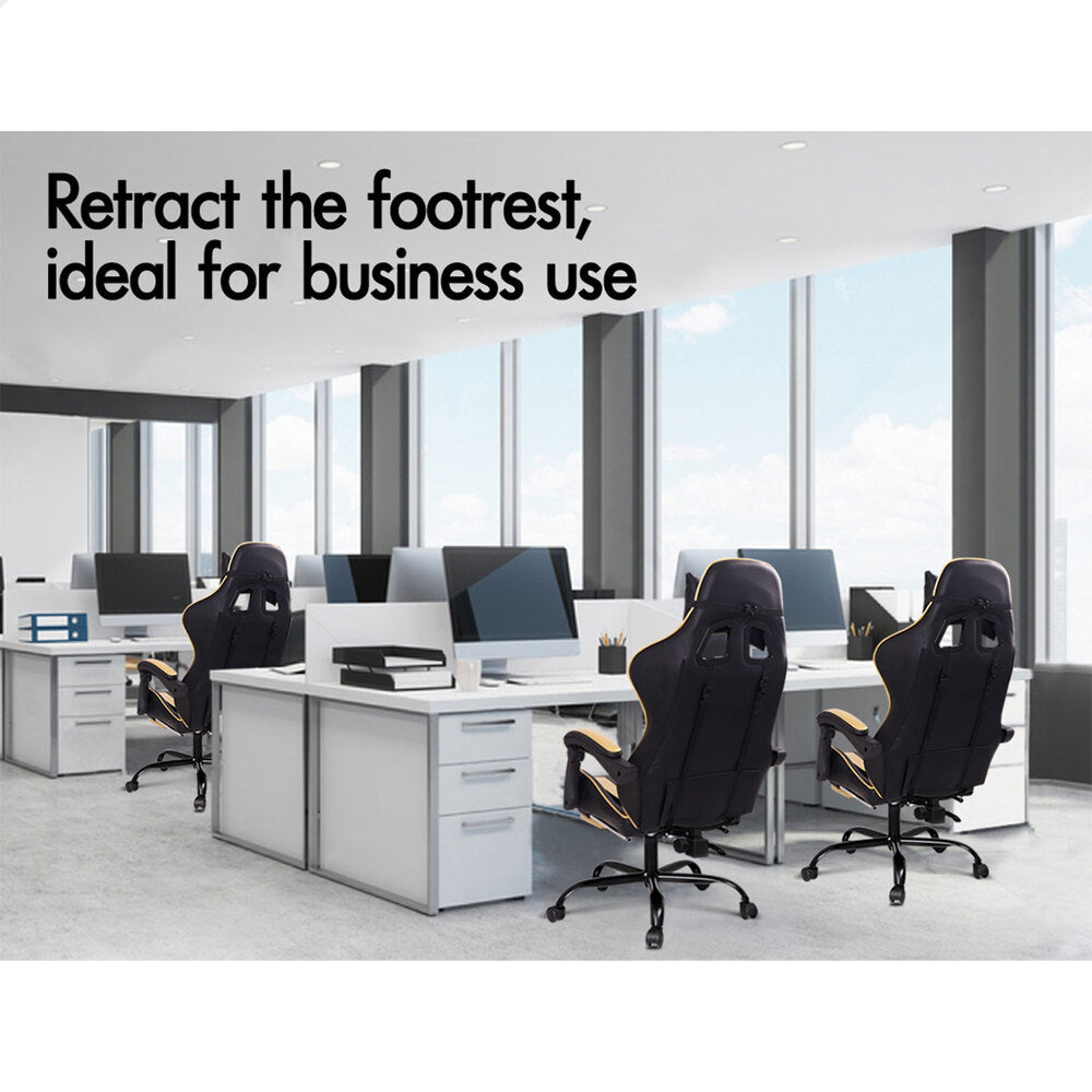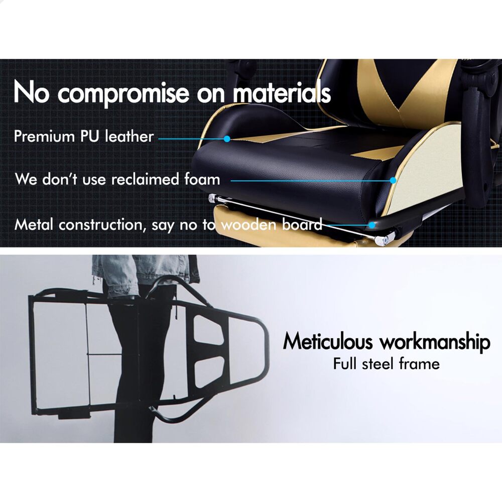 Alfordson Gaming Chair Office Executive Racing Footrest Seat PU Leather Gold