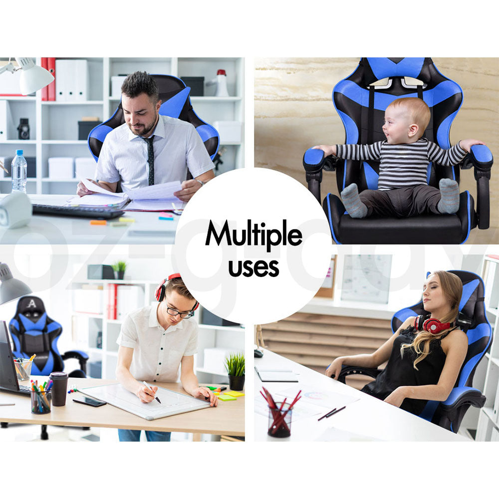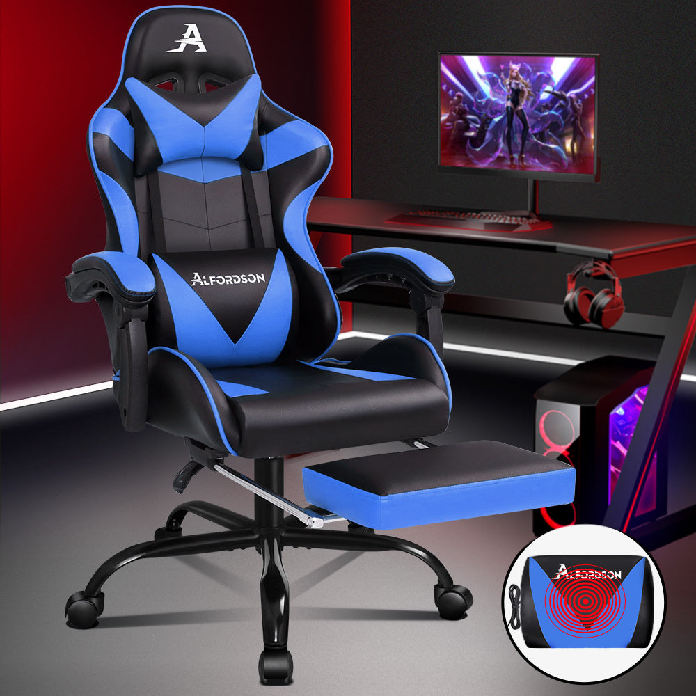 ALFORDSON Gaming Chair Office Executive Racing Footrest Seat PU Leather Blue