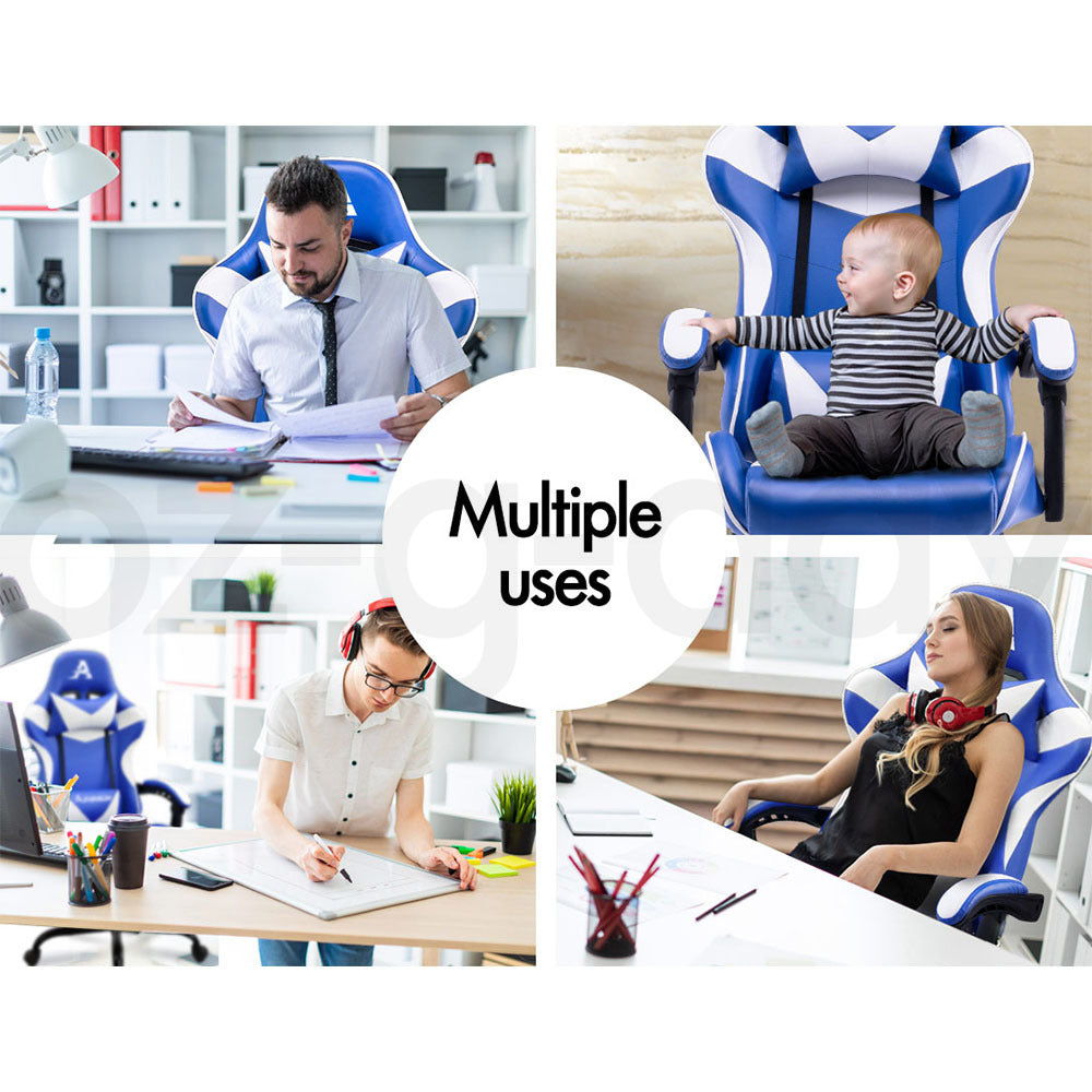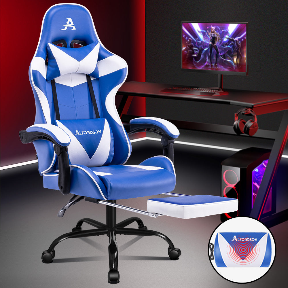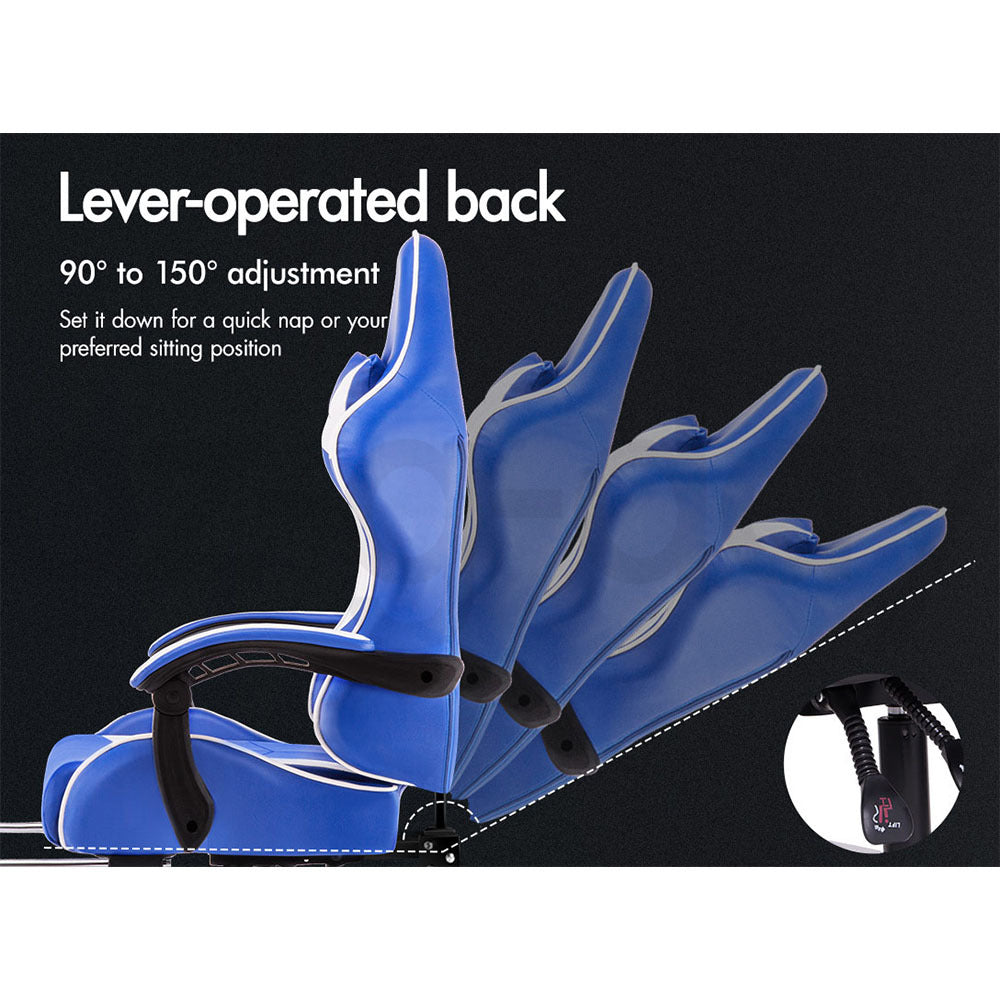 ALFORDSON Gaming Chair Office Executive Racing Footrest Seat Leather Blue White