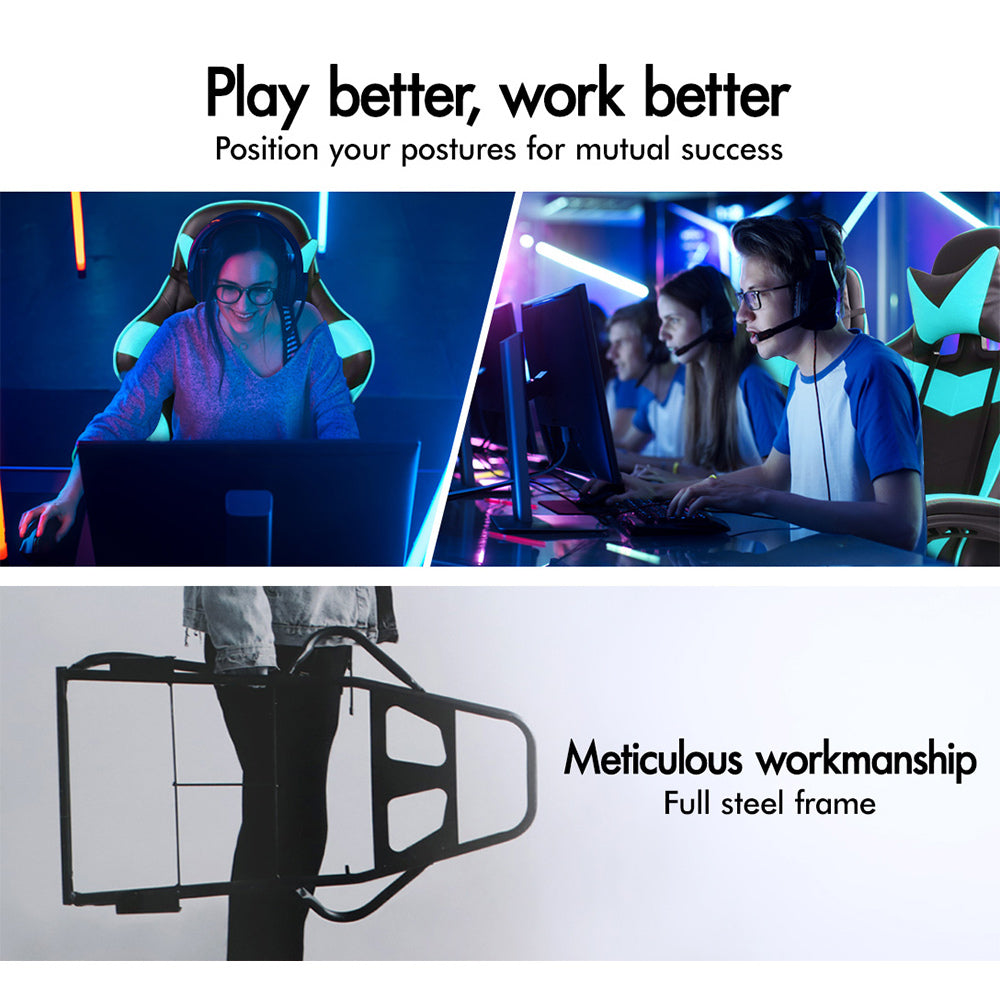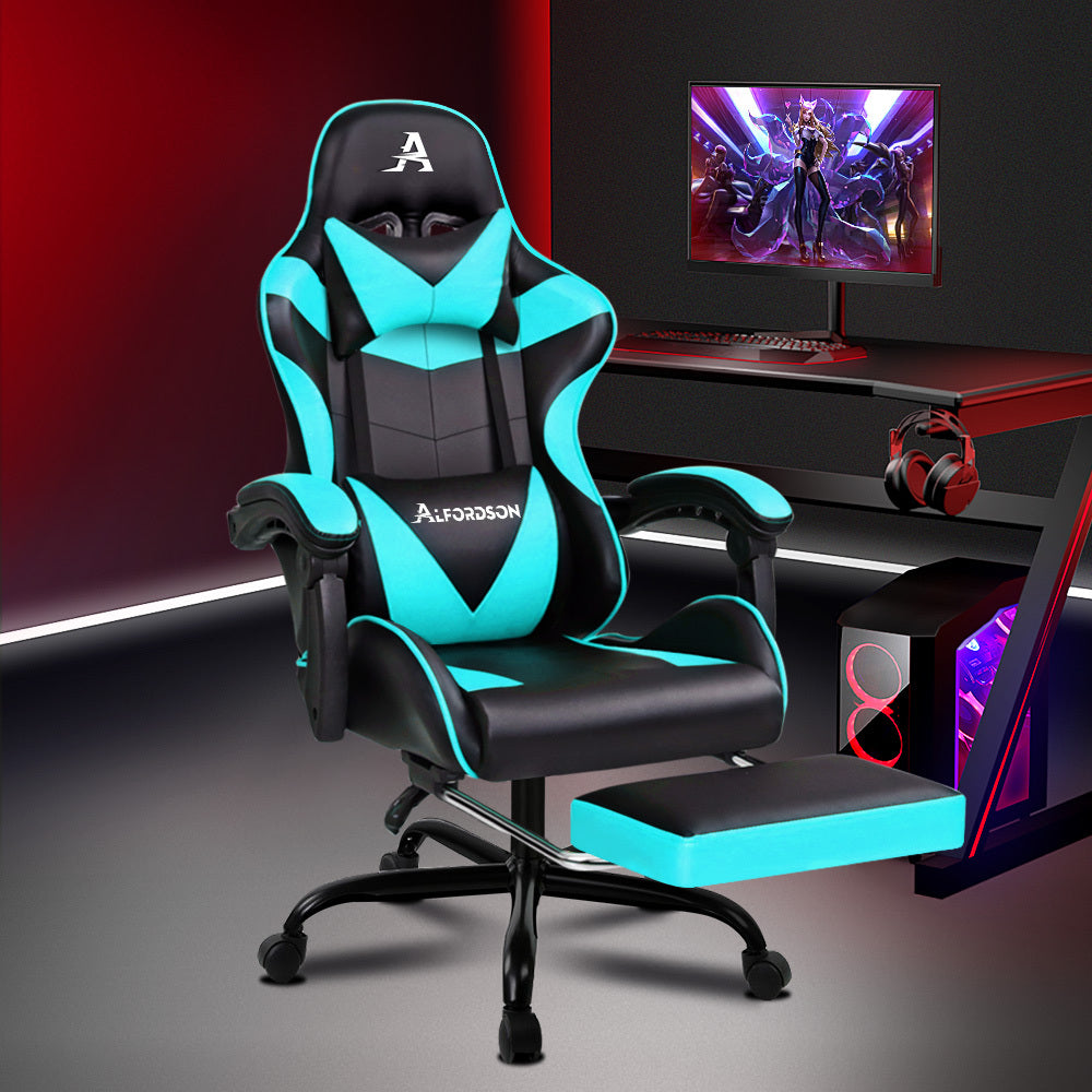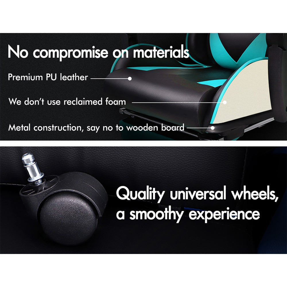 ALFORDSON Gaming Chair Office Executive Racing Footrest Seat PU Leather Cyan
