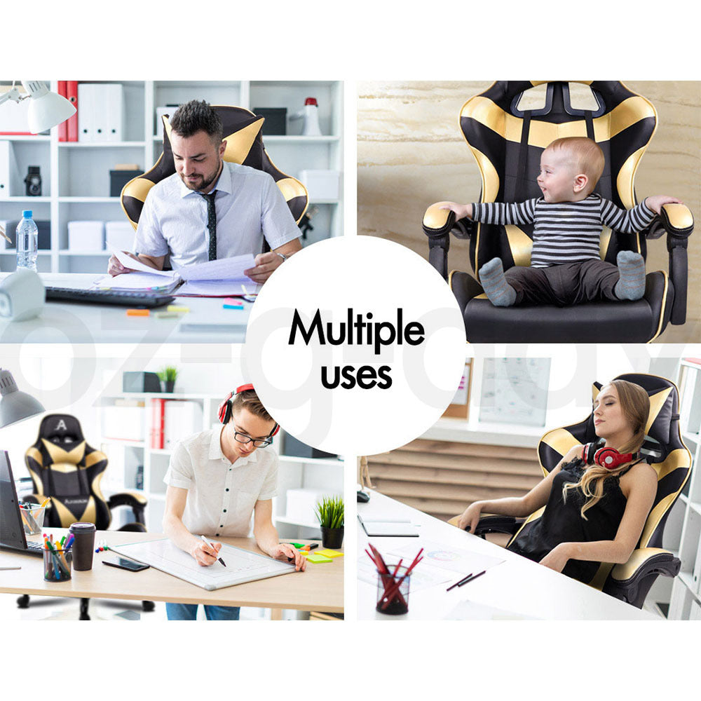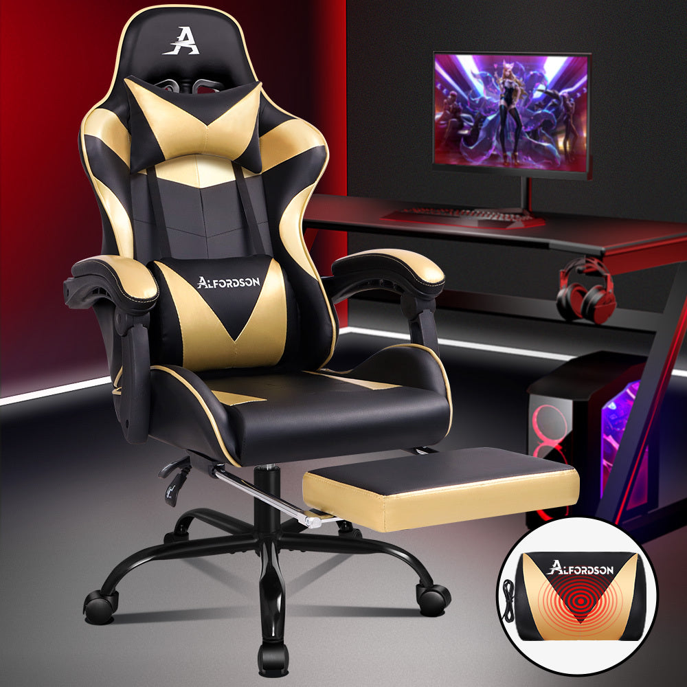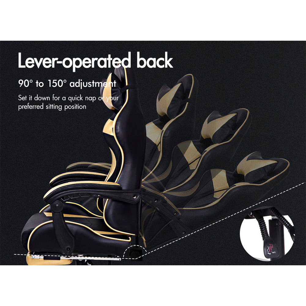 ALFORDSON Gaming Chair Office Executive Racing Footrest Seat PU Leather Gold