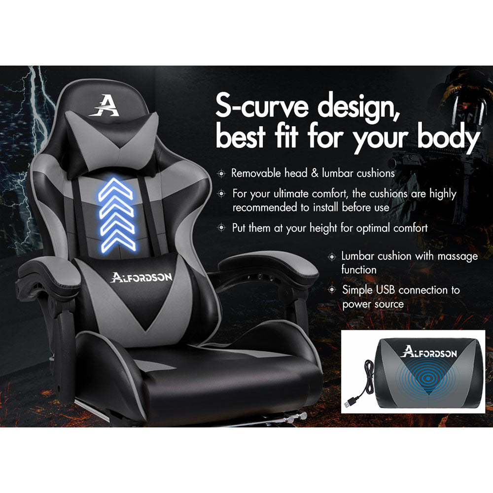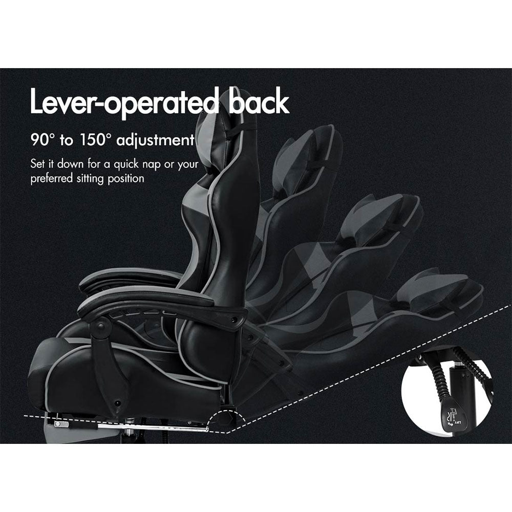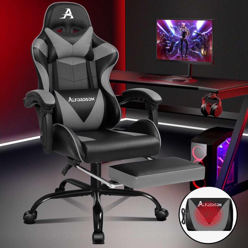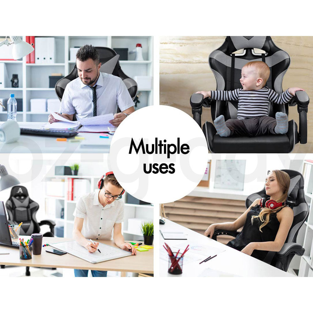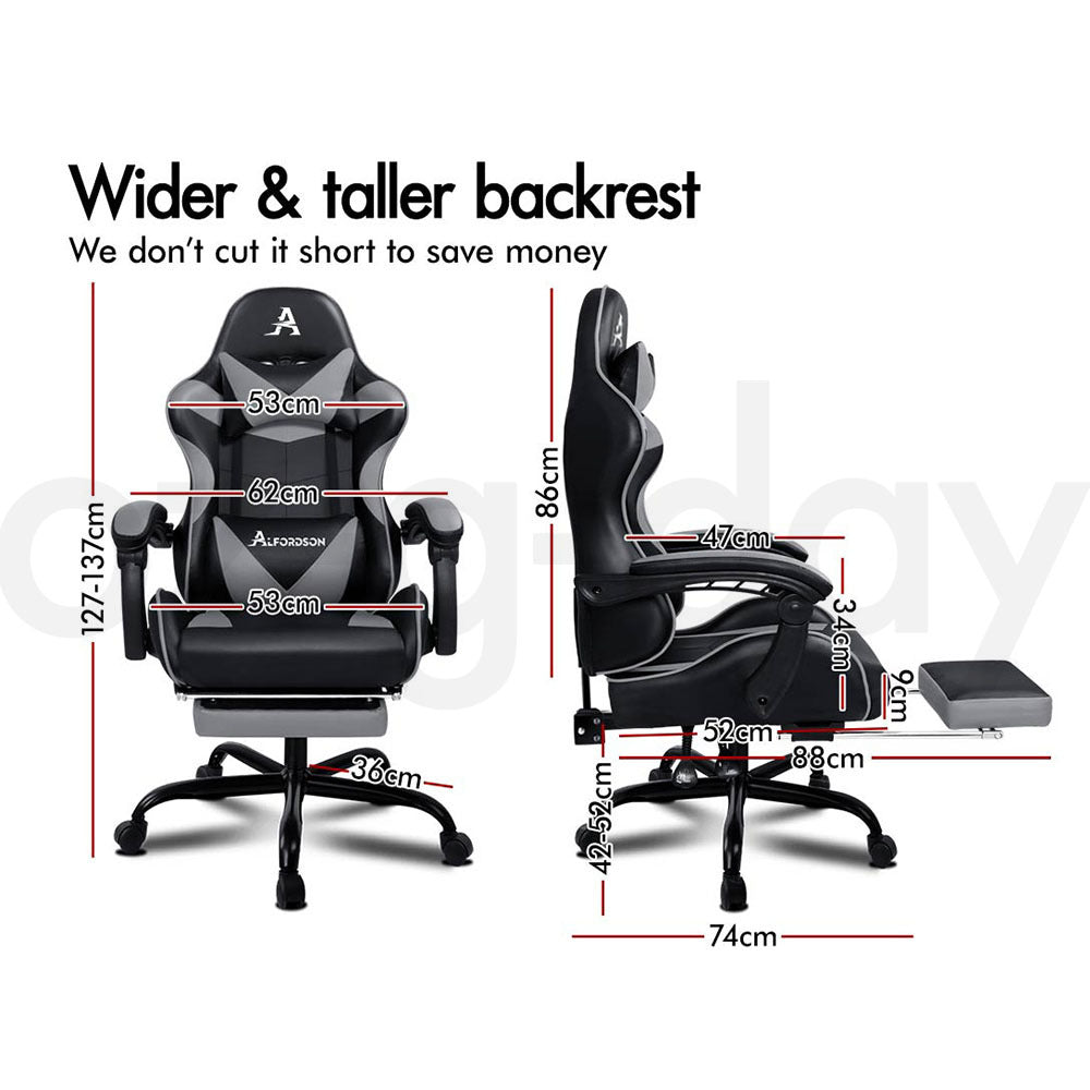 ALFORDSON Gaming Chair Office Executive Racing Footrest Seat PU Leather Grey
