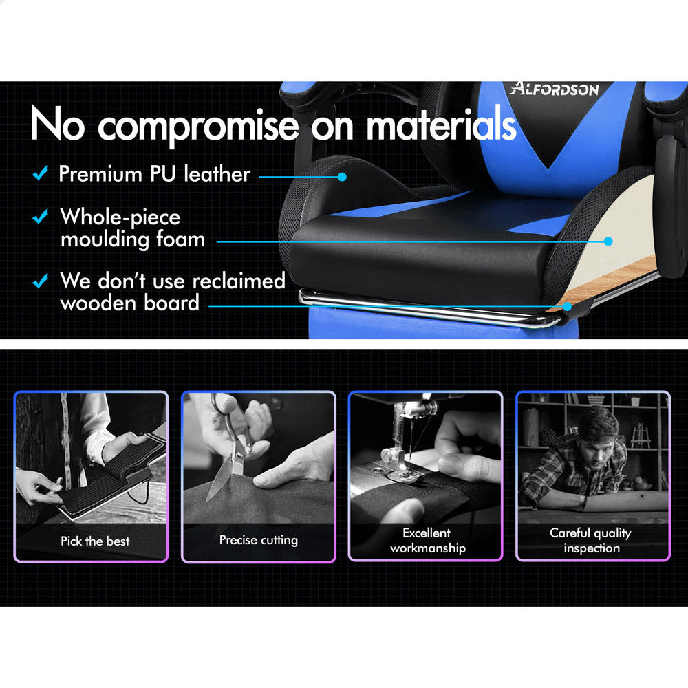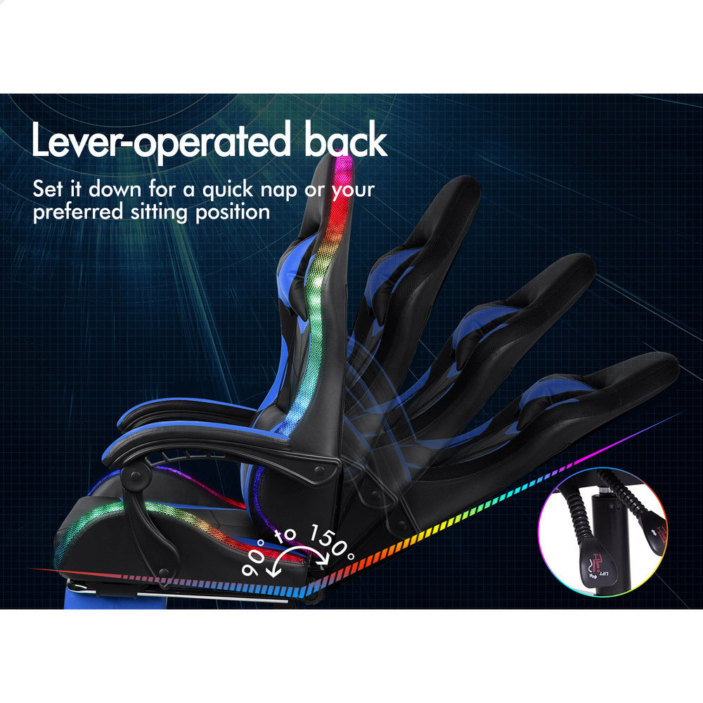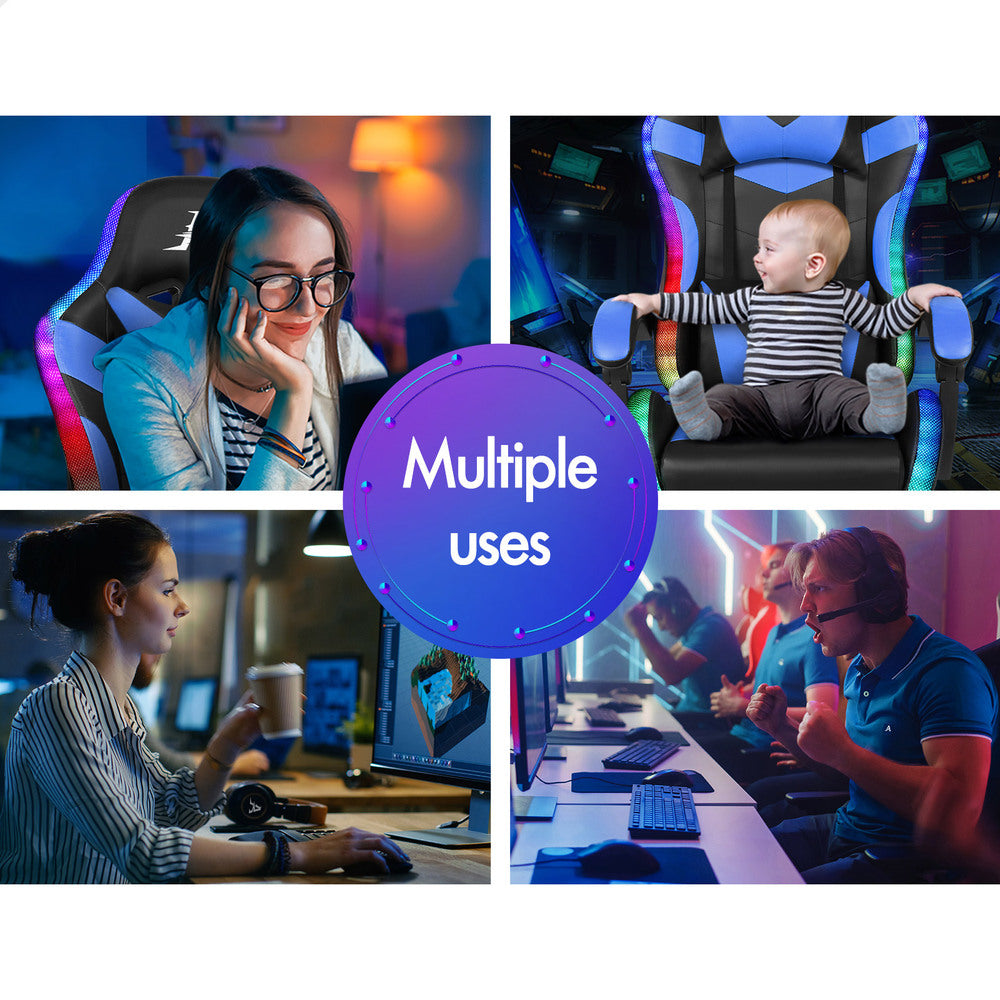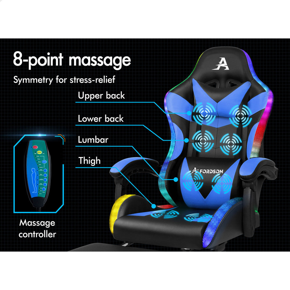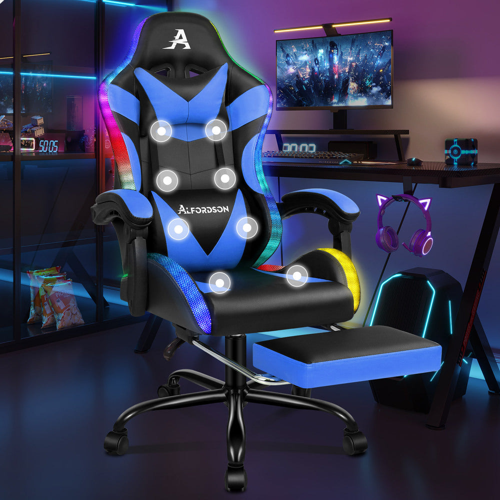 ALFORDSON Gaming Chair Office Massage 12 RGB LED Computer Seat PU Leather Blue