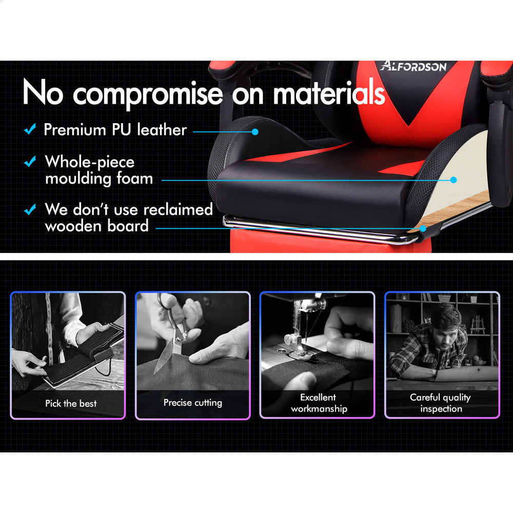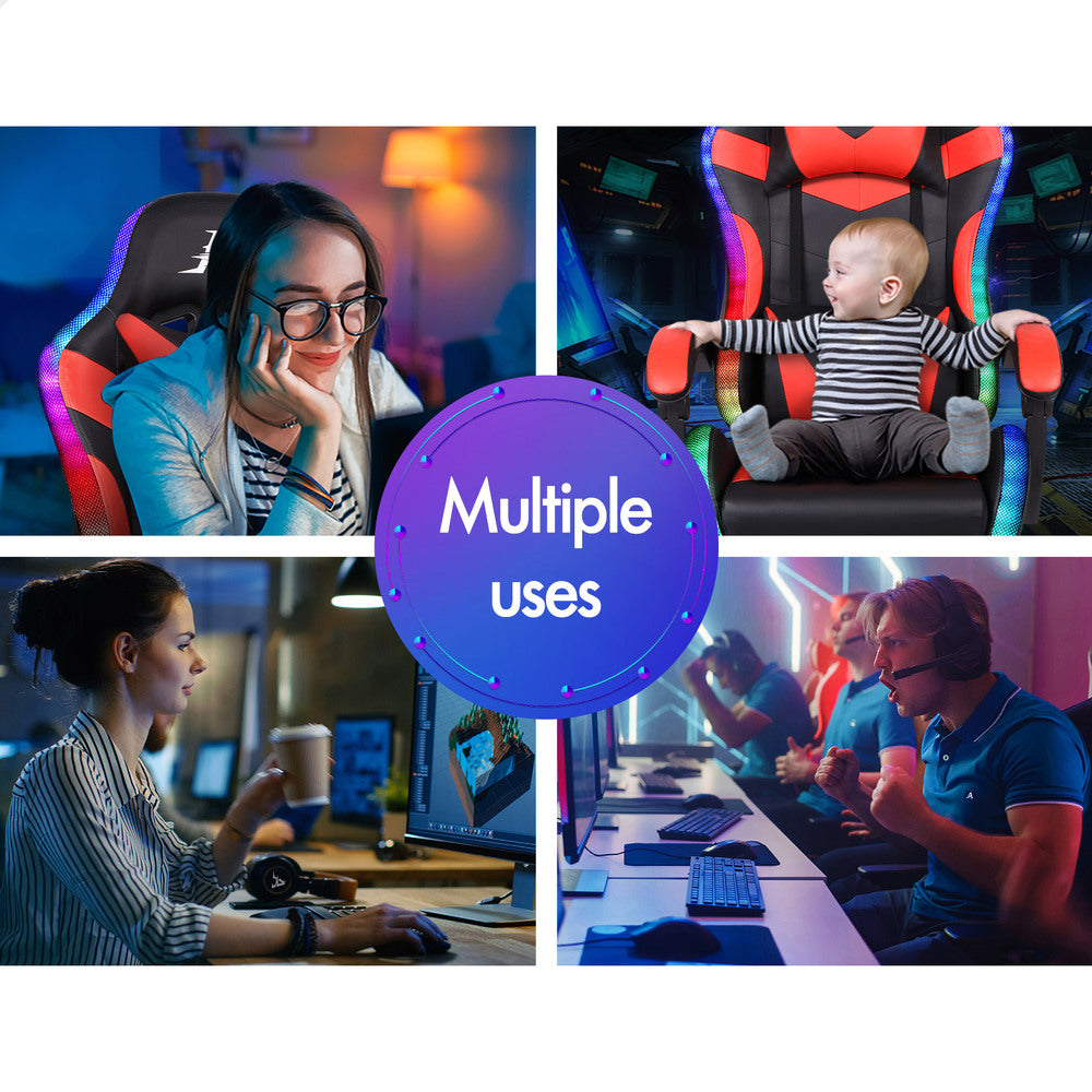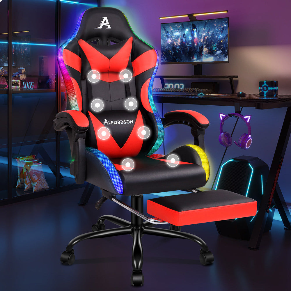 ALFORDSON Gaming Chair Office Massage 12 RGB LED Computer Seat PU Leather Red
