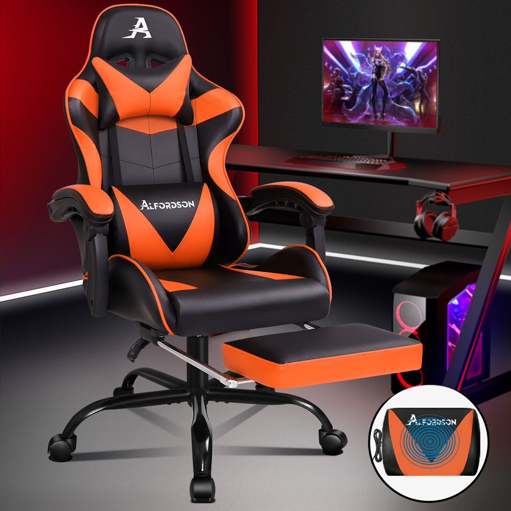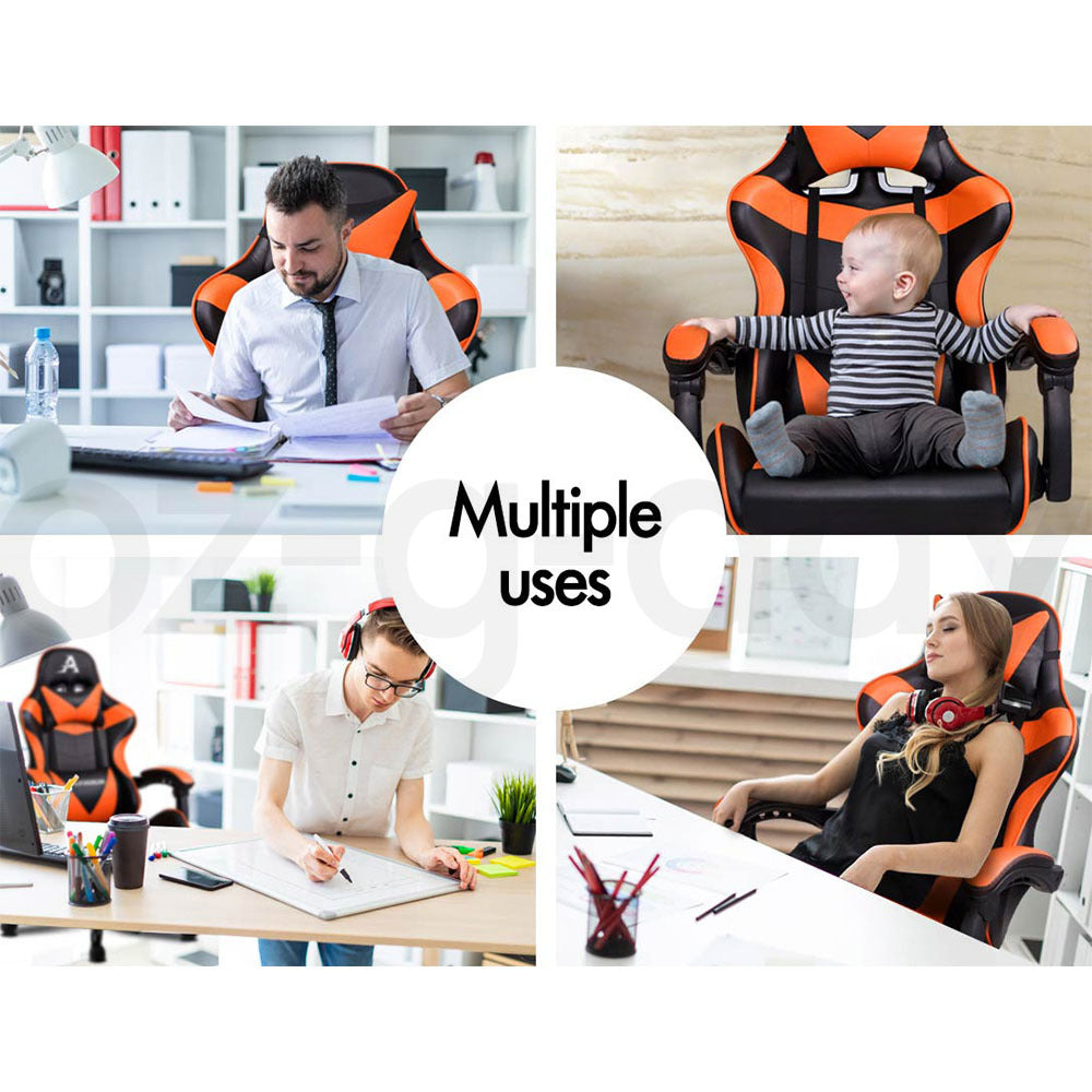 ALFORDSON Gaming Chair Office Executive Racing Footrest Seat PU Leather Orange