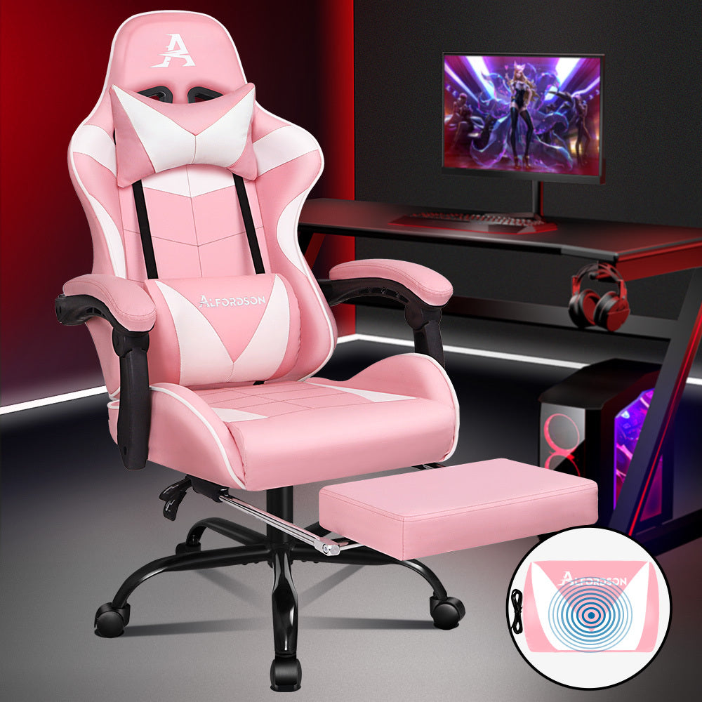 ALFORDSON Gaming Chair Office Executive Racing Footrest Seat PU Leather Pink