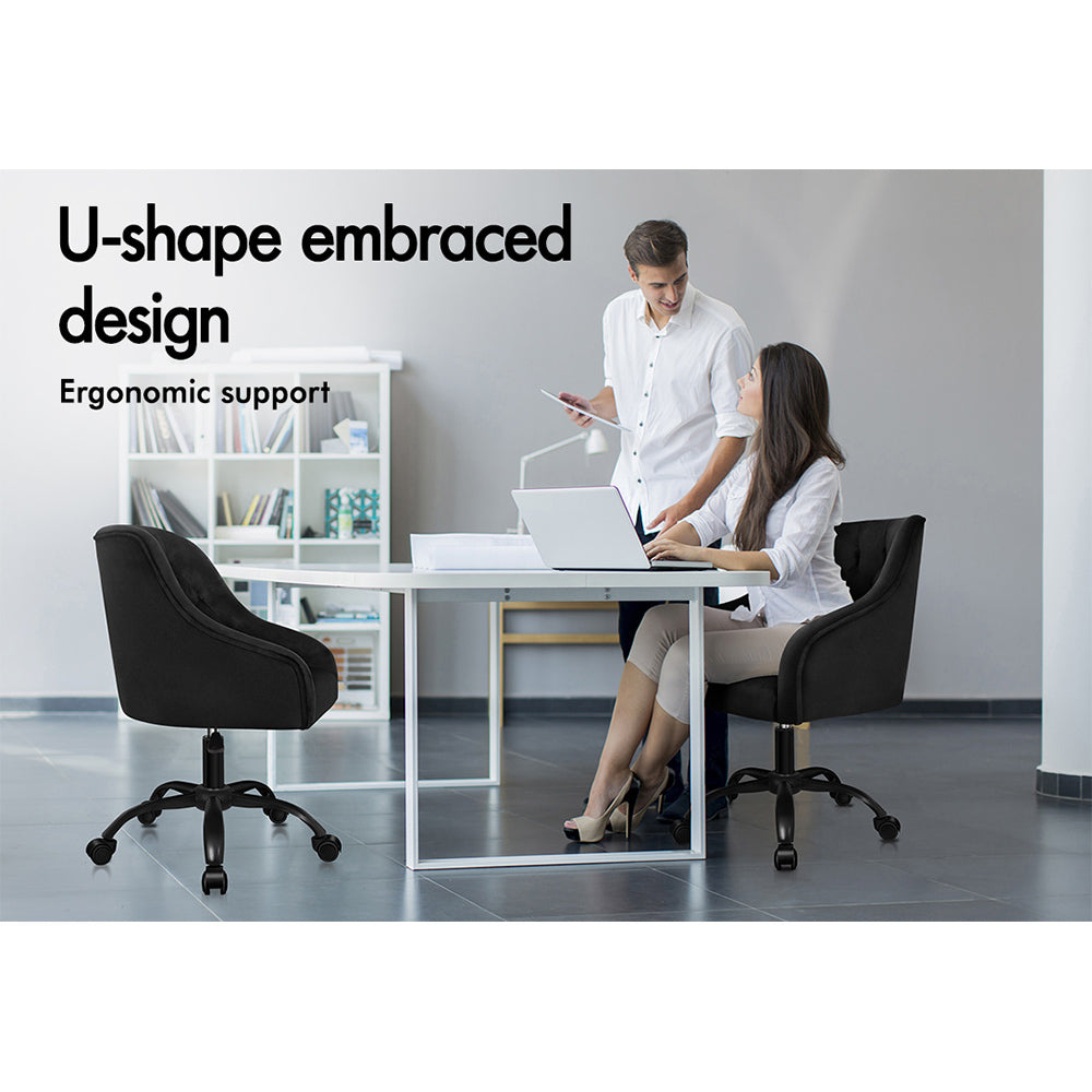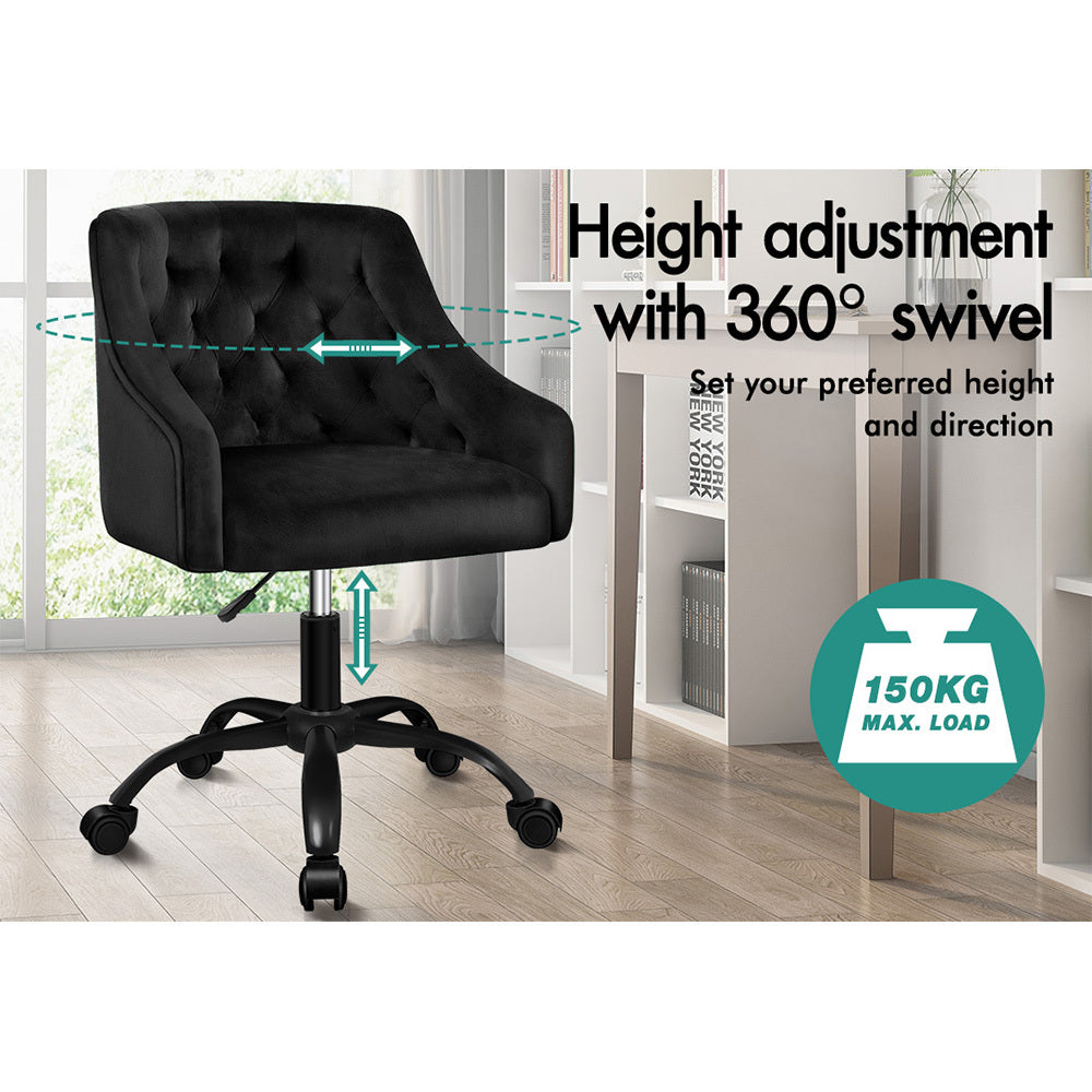 ALFORDSON Velvet Office Chair Computer Swivel Armchair Work Adult Kids Black