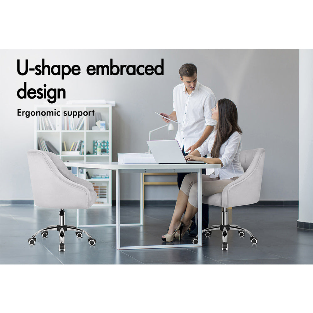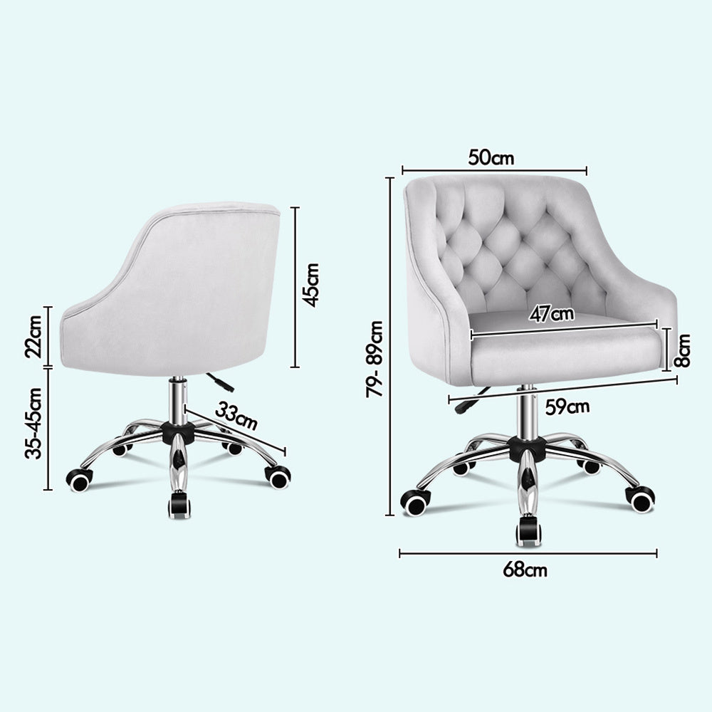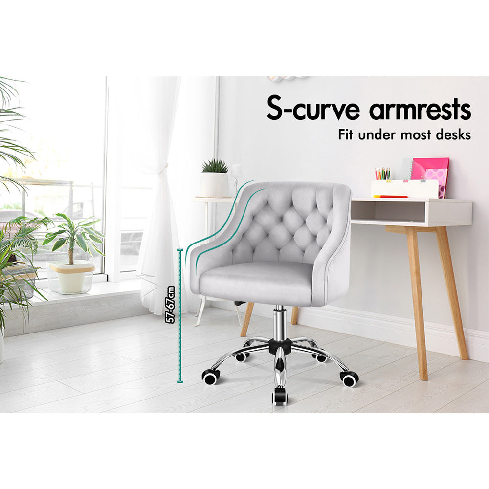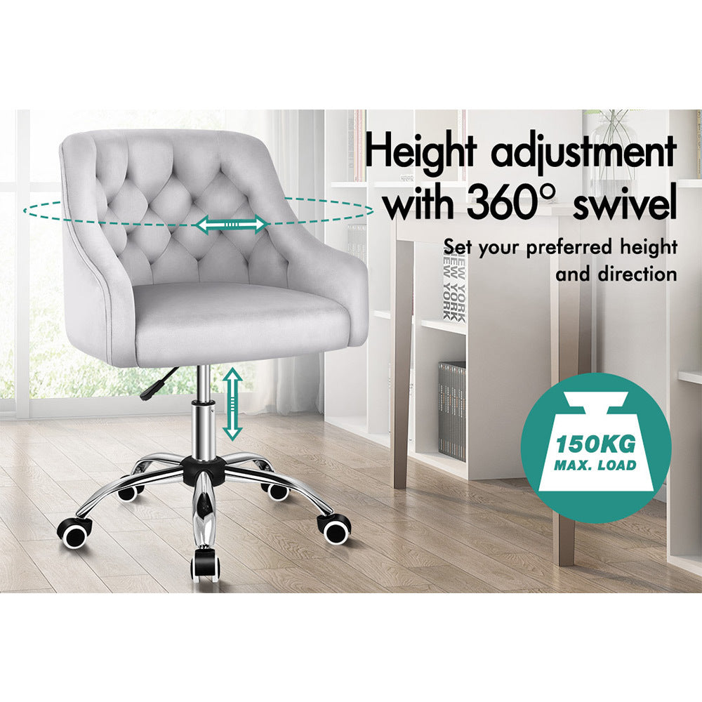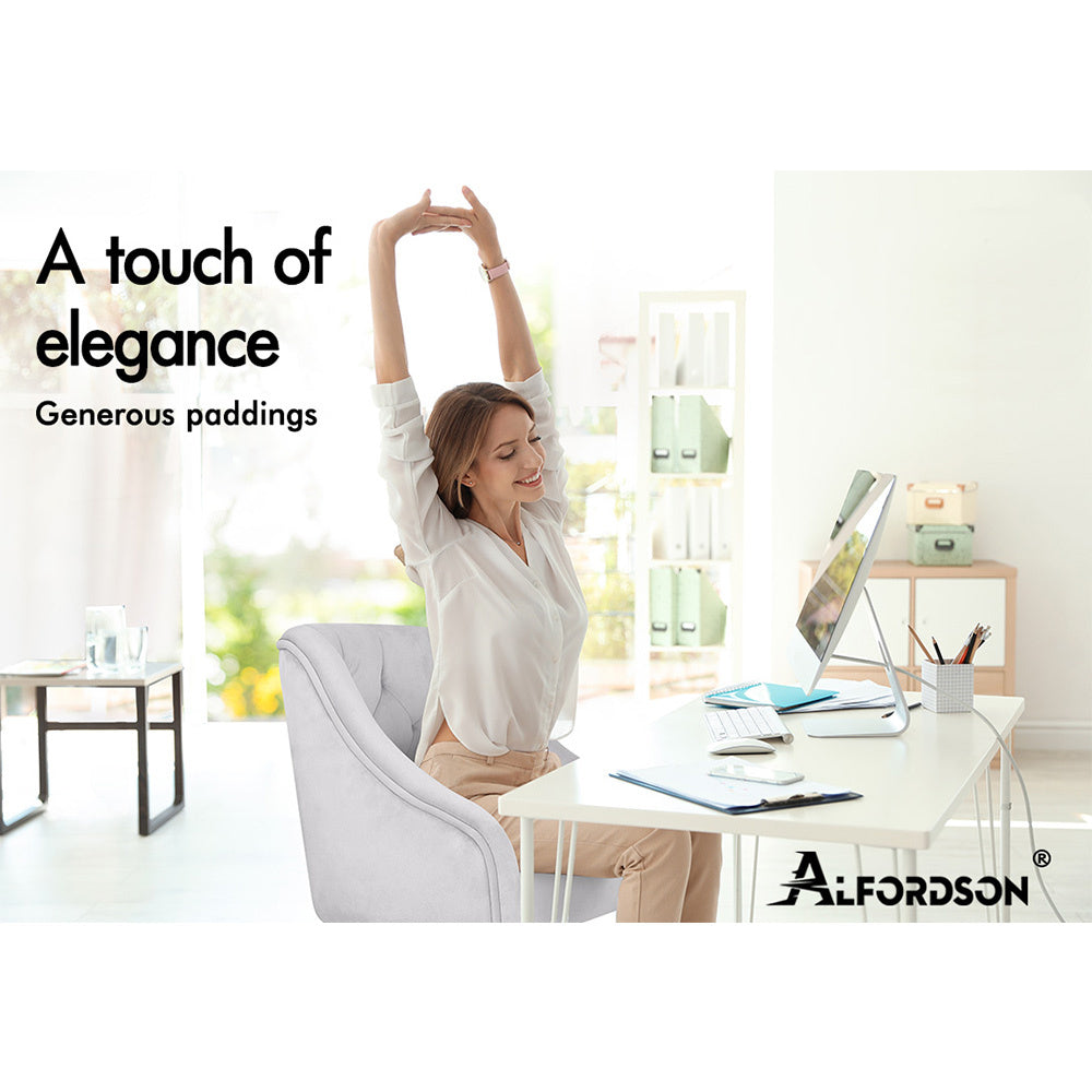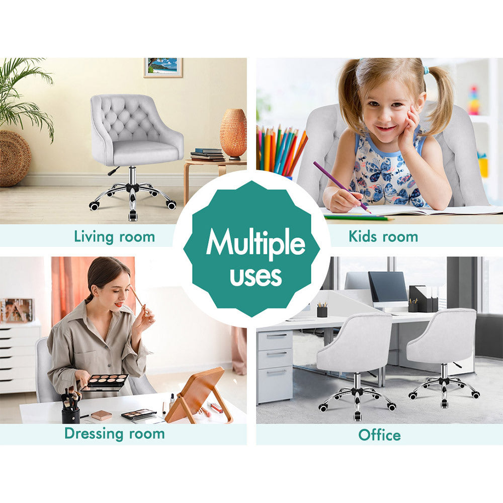 ALFORDSON Velvet Office Chair Computer Swivel Chairs Armchair Work Study Seat Grey Adult Kids