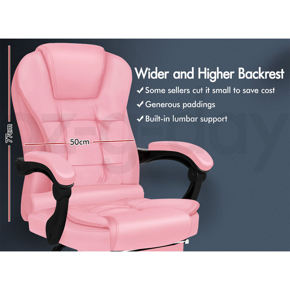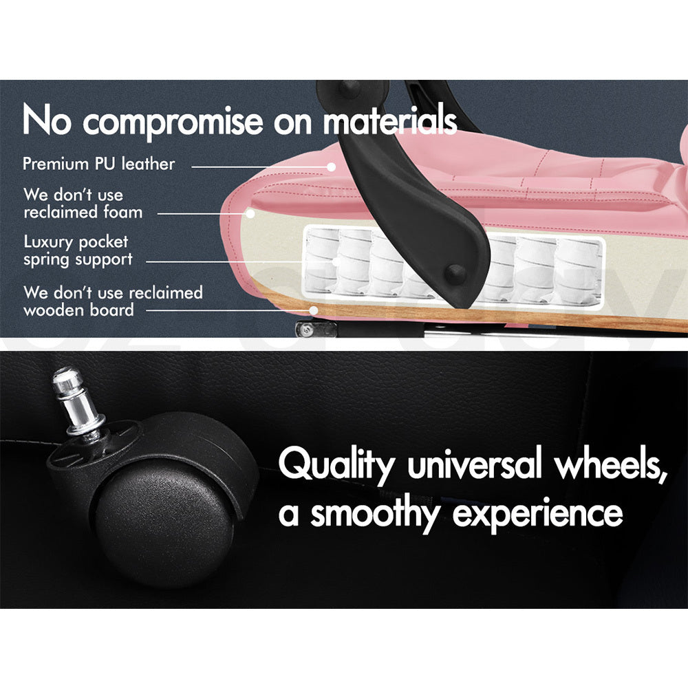 ALFORDSON Massage Office Chair FOOTREST Executive Gaming Racing Seat Pink PU