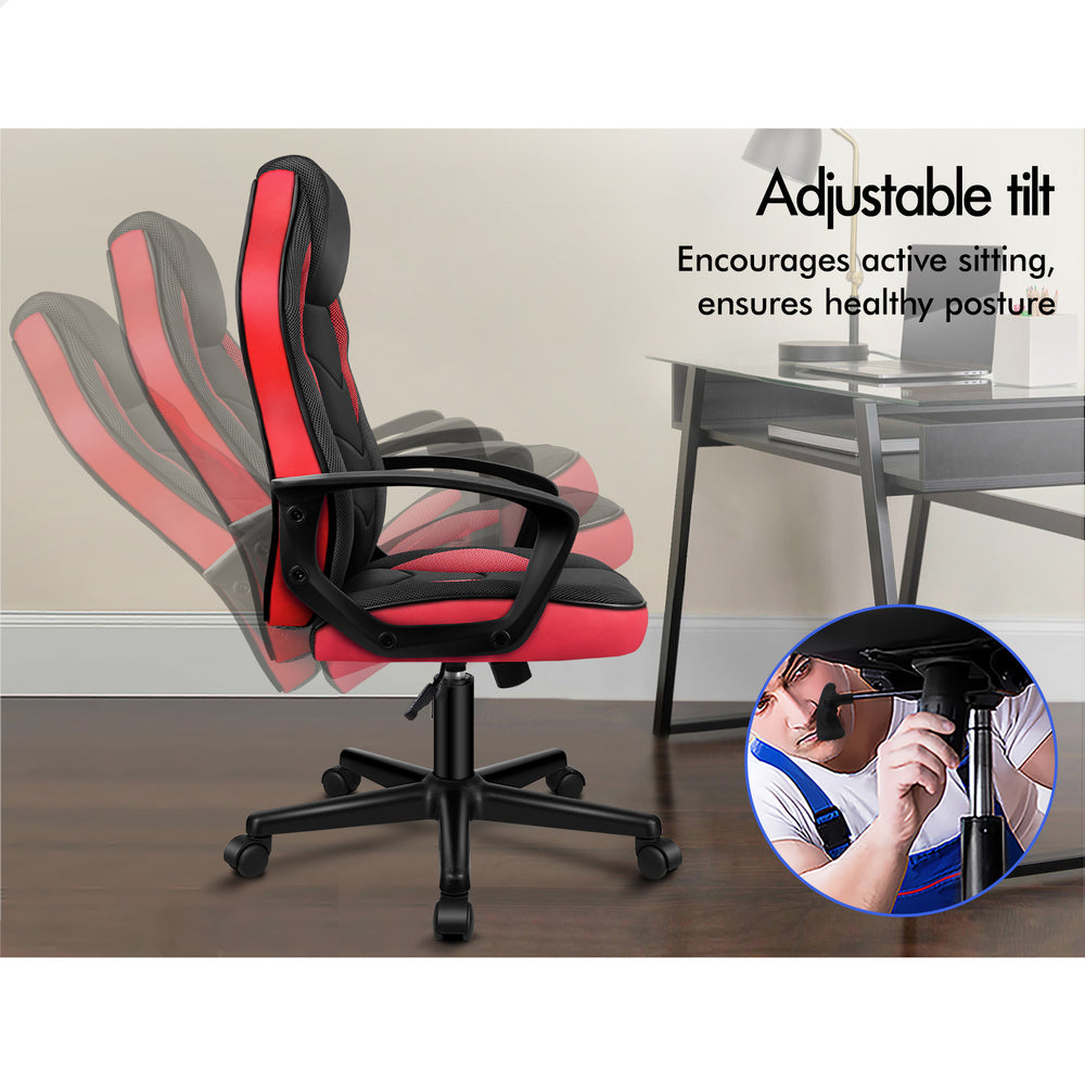 Featuring a breathable mesh and premium PU leather upholstery, this chair keeps you cool and comfortable. The mesh material promotes airflow, while the PU leather adds a touch of luxury and durability. Full swivel capability and adjustable tilt function ensure smooth and effortless movement, enhancing your experience.