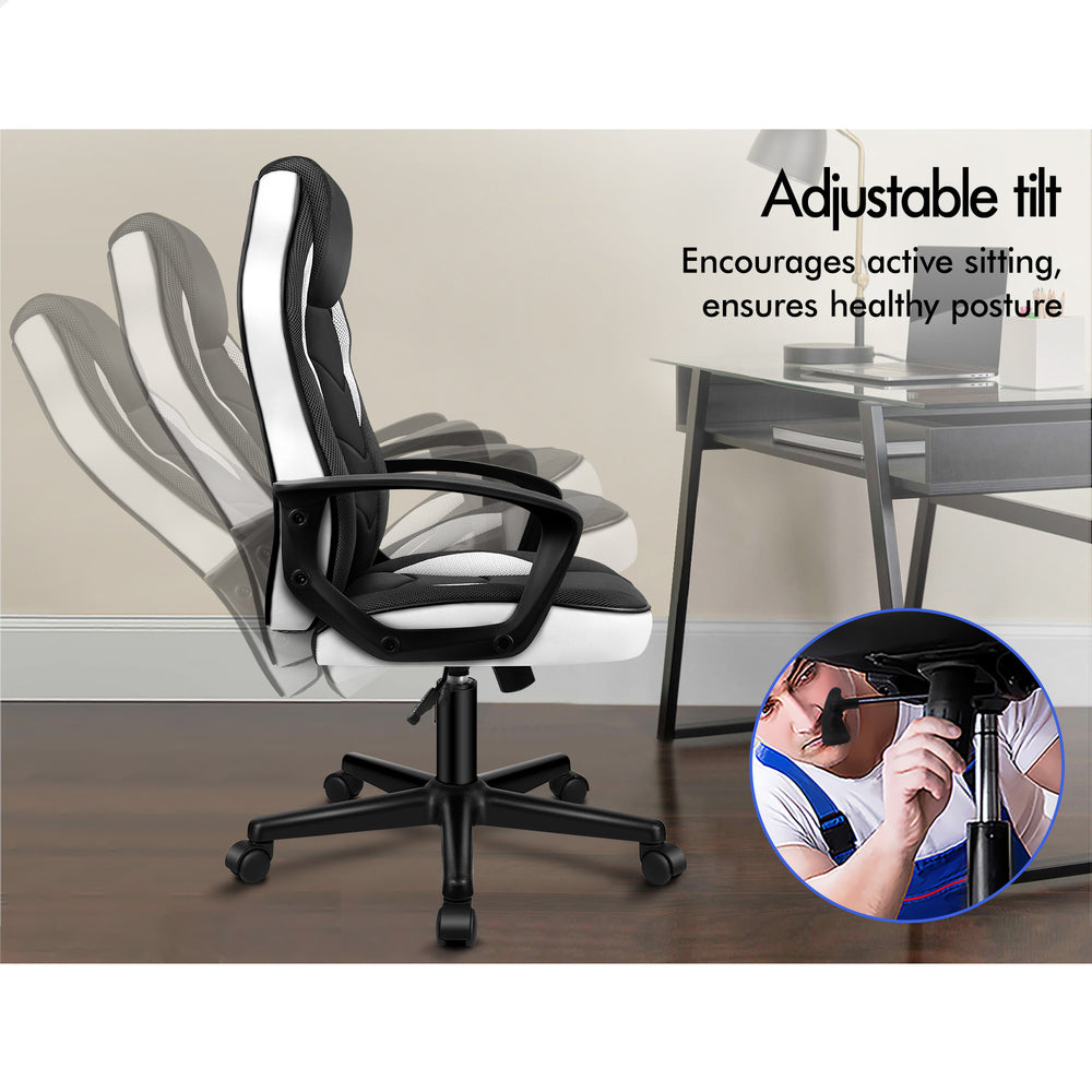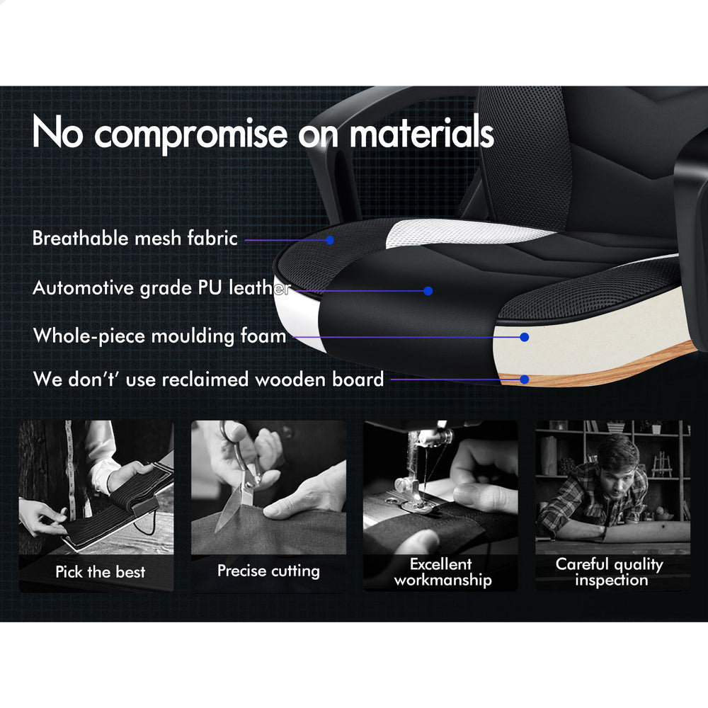 Featuring a breathable mesh and premium PU leather upholstery, this chair keeps you cool and comfortable. The mesh material promotes airflow, while the PU leather adds a touch of luxury and durability. Full swivel capability and adjustable tilt function ensure smooth and effortless movement, enhancing your experience.