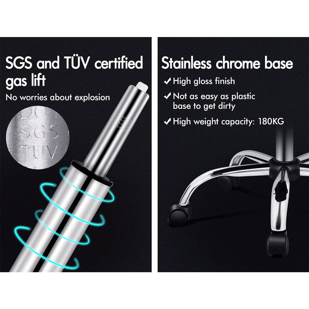 A stylish chrome base with TUV certified casters, Intertek approved mesh fabric, SGS approved Gas-Lift system and tilt function, delivering absolute five star luxury.