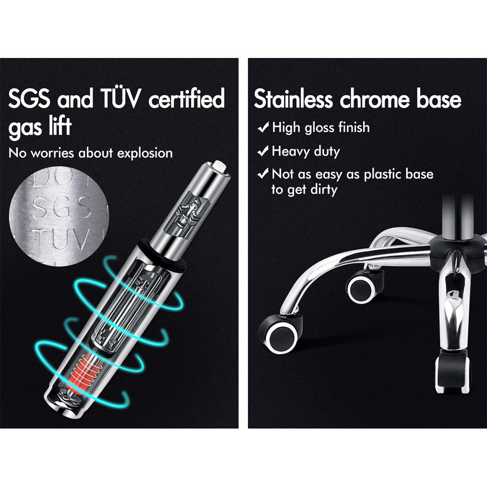 A stylish chrome base with TUV certified casters, Intertek approved mesh fabric, SGS approved Gas-Lift system, ensuring optimal durability and delivering absolute five star luxury.