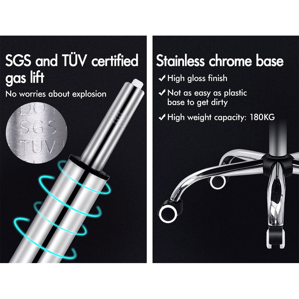 A stylish chrome base with TUV certified casters, Intertek approved mesh fabric, SGS approved Gas-Lift system and tilt function, delivering absolute five star luxury.