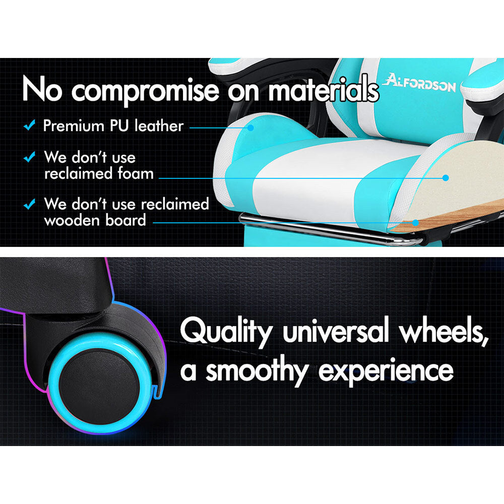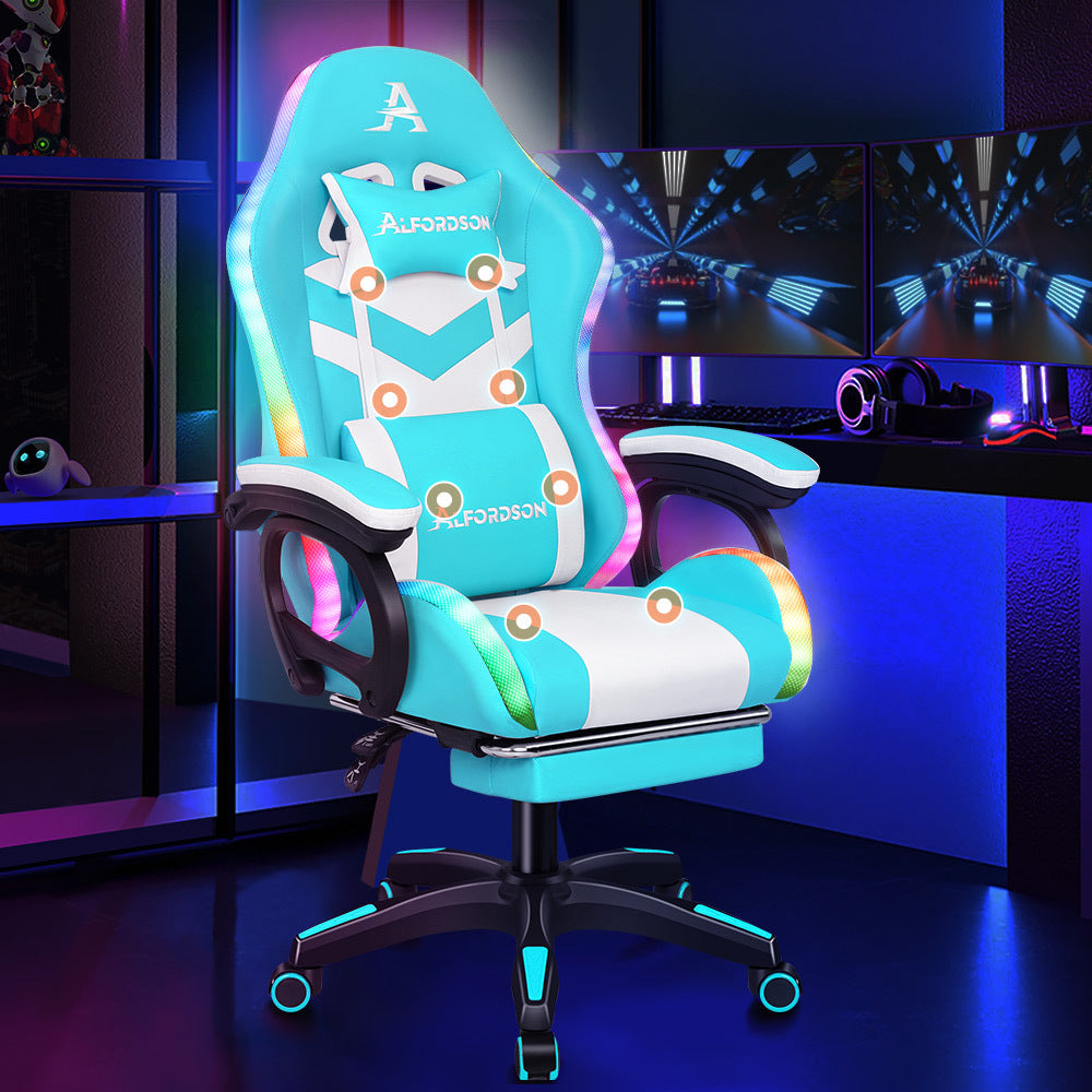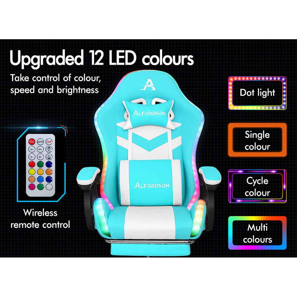 ALFORDSON Gaming Office Chair Massage 12 RGB LED Computer Seat Footrest