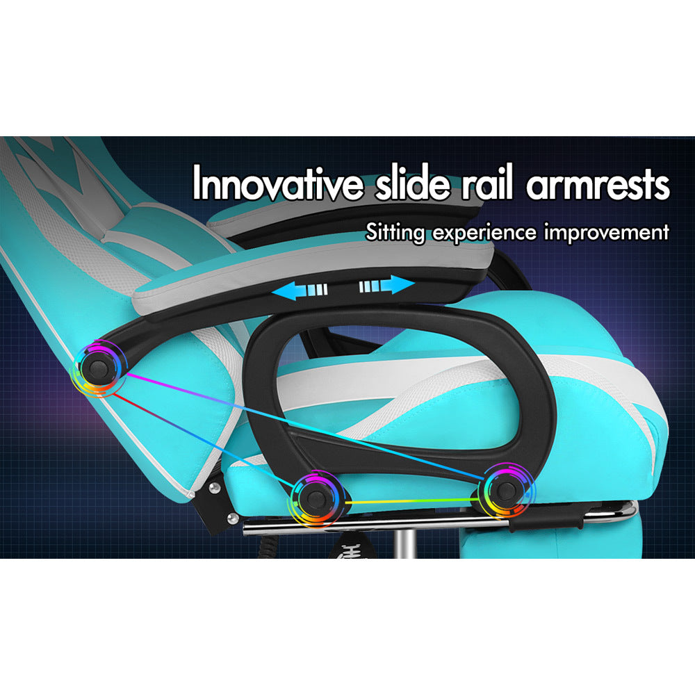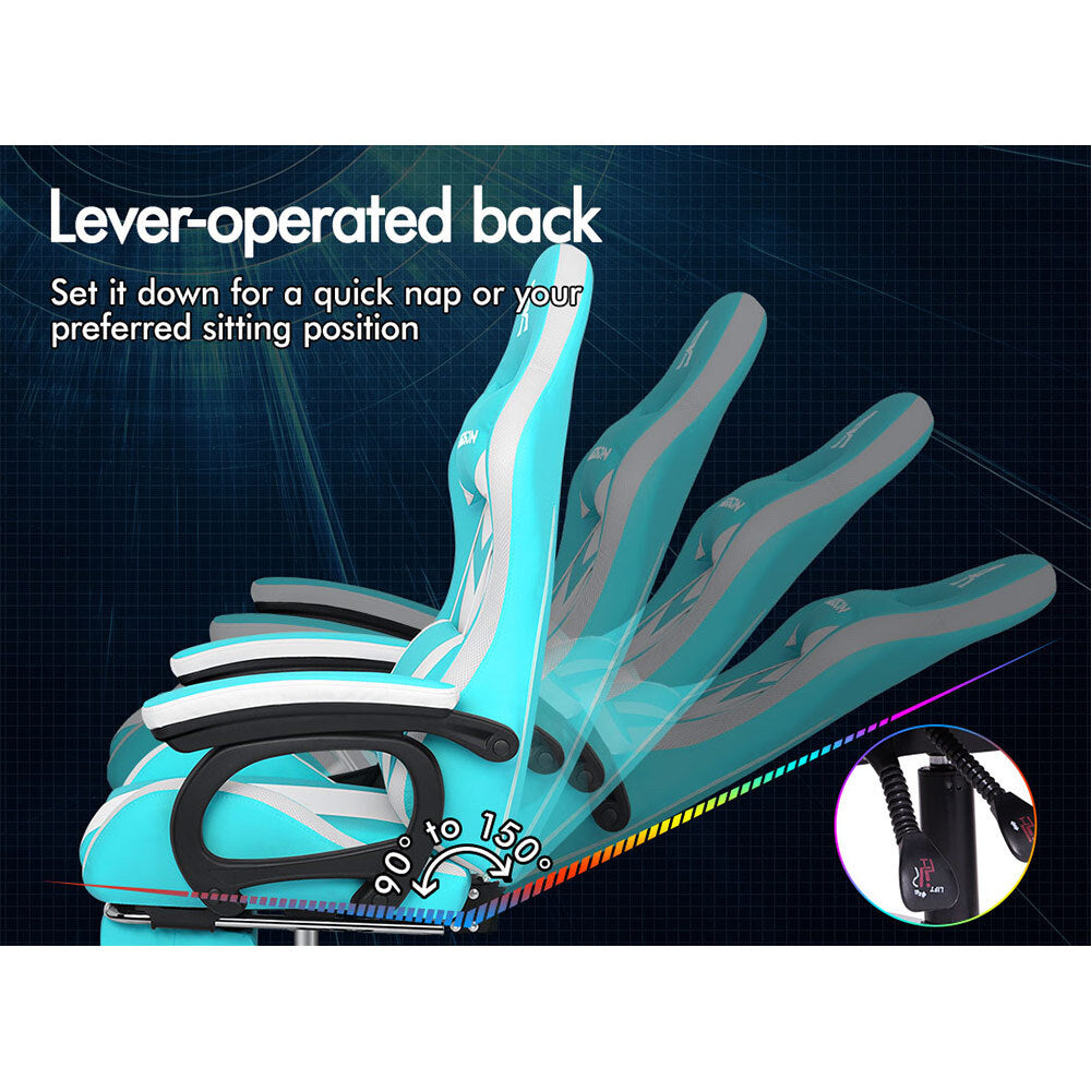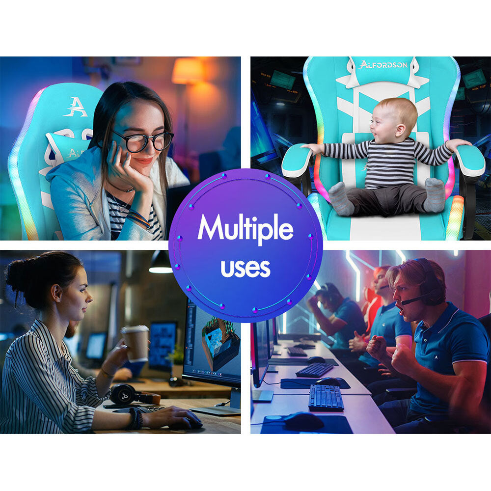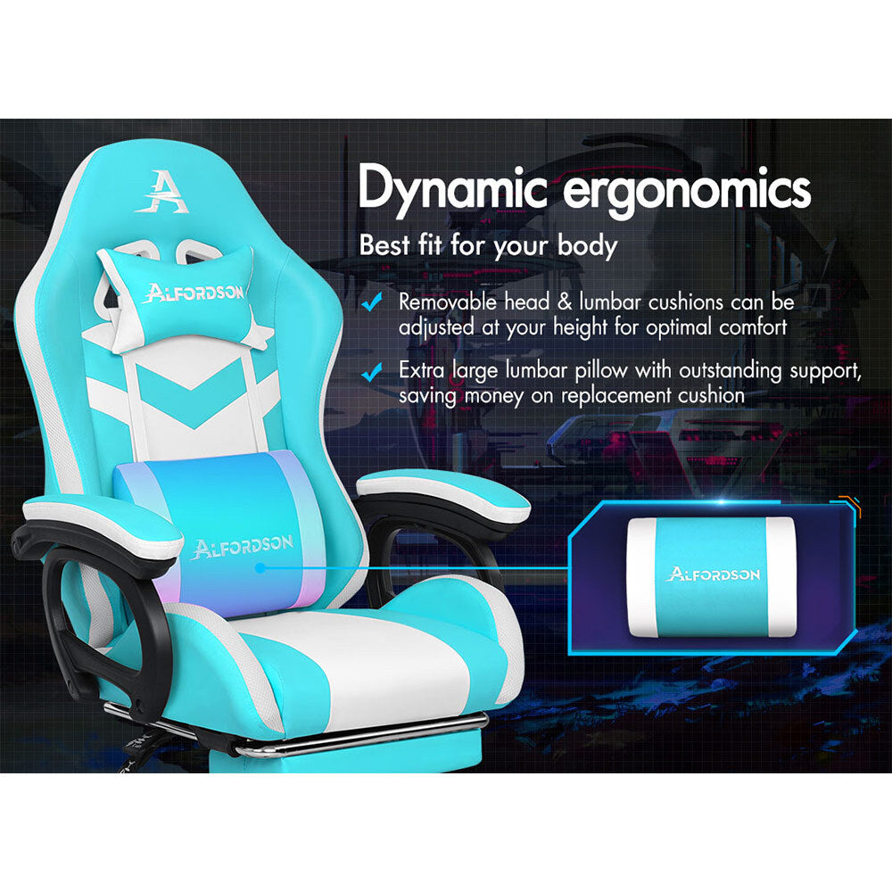 ALFORDSON Gaming Office Chair Massage 12 RGB LED Computer Seat Footrest