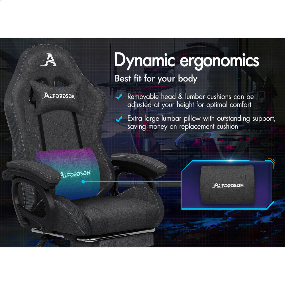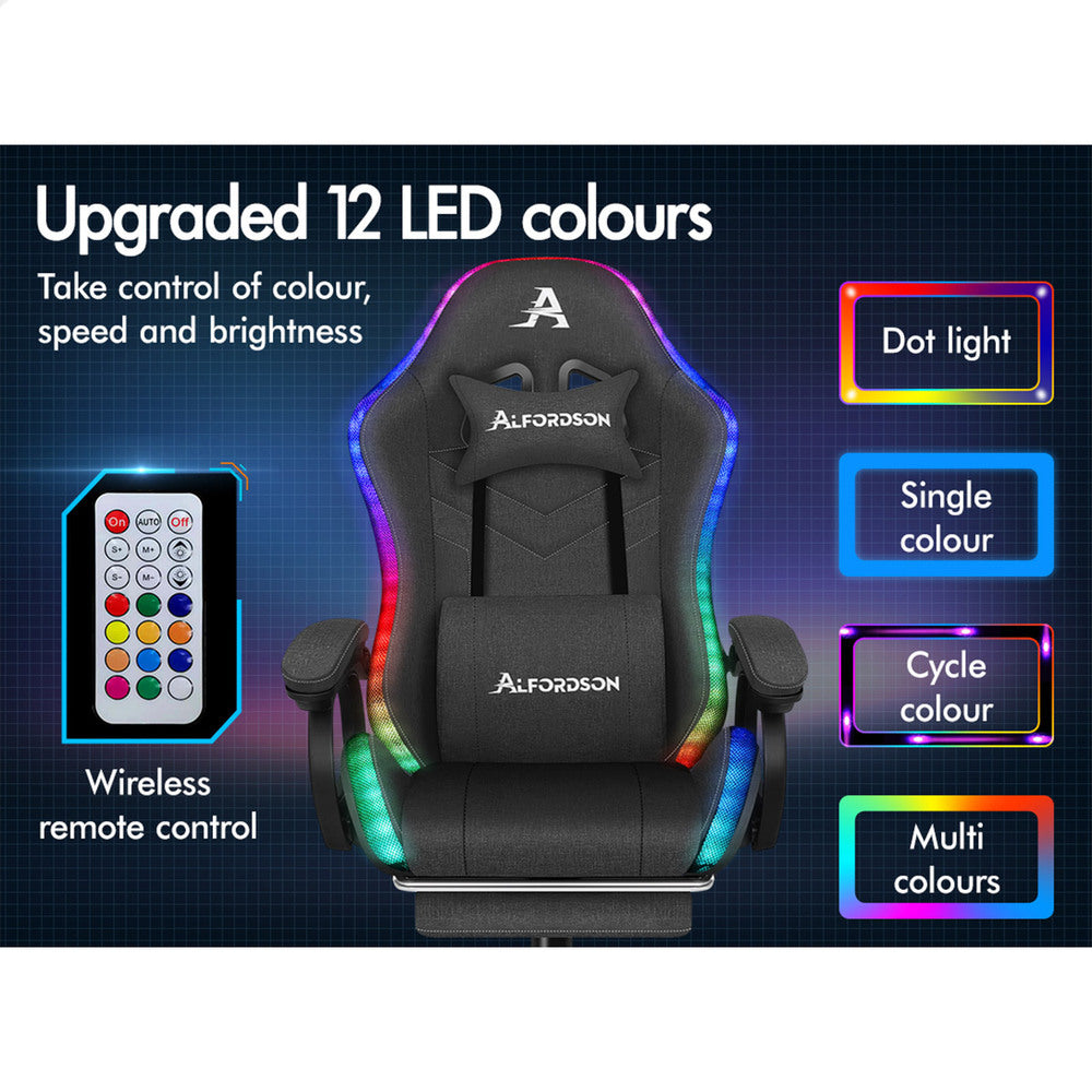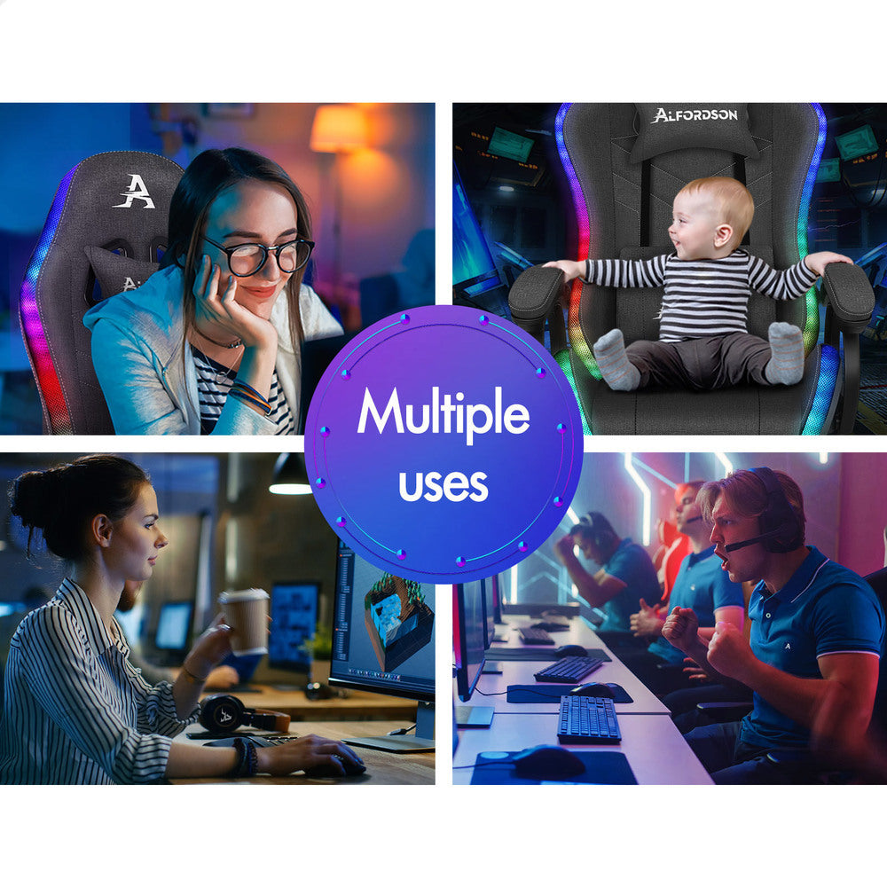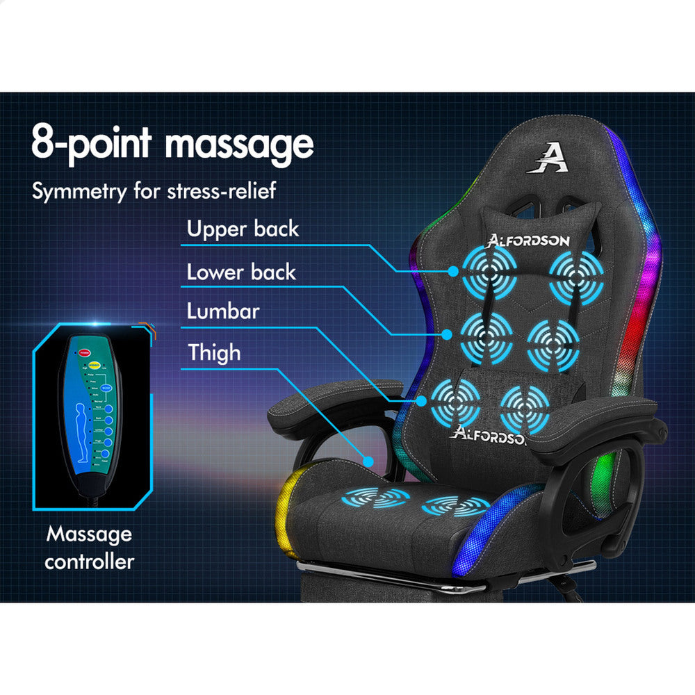 ALFORDSON LED Gaming Chair Office with 8-Point Massage Fabric Grey