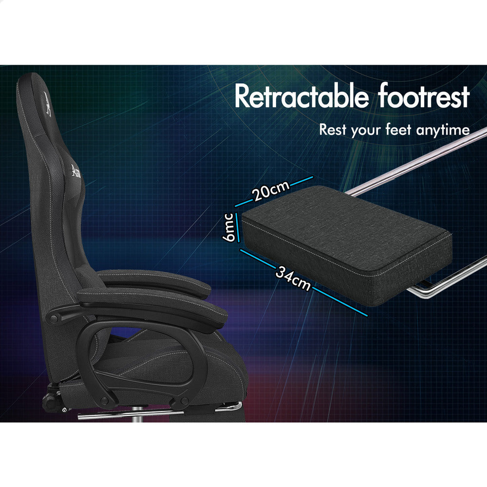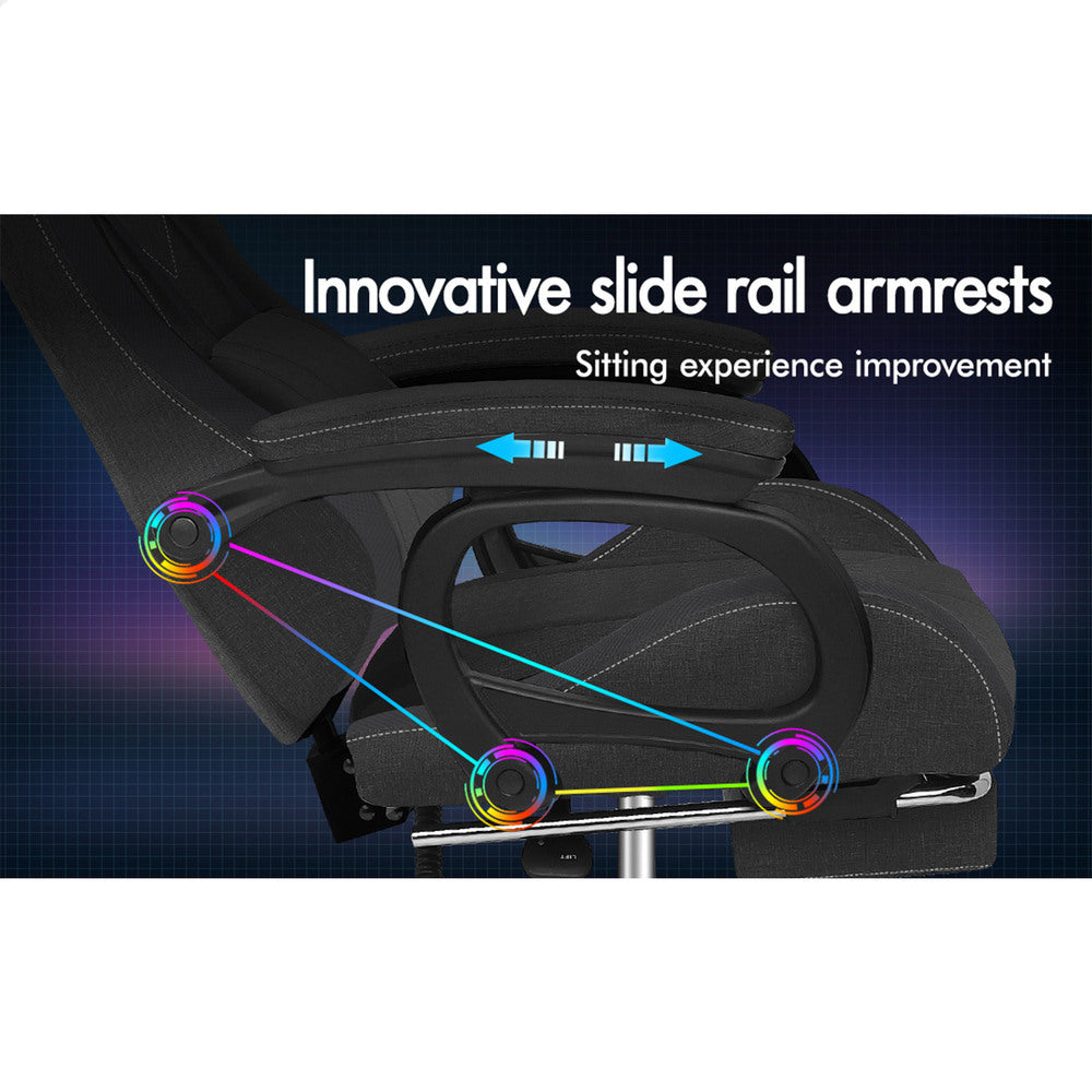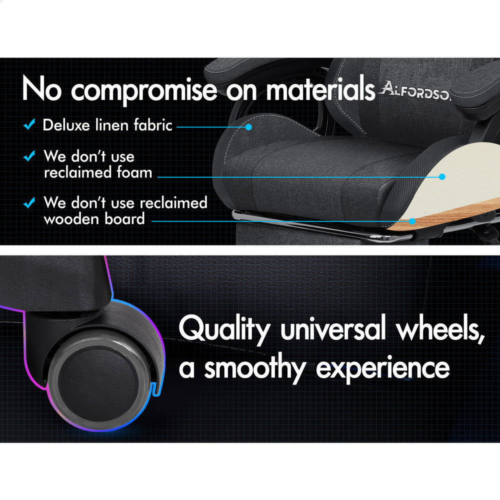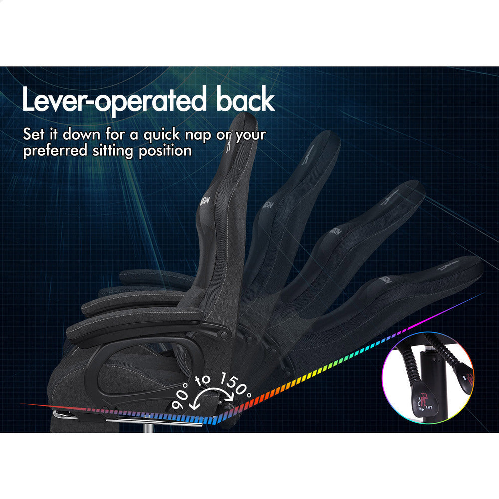 ALFORDSON LED Gaming Chair Office with 8-Point Massage Fabric Grey