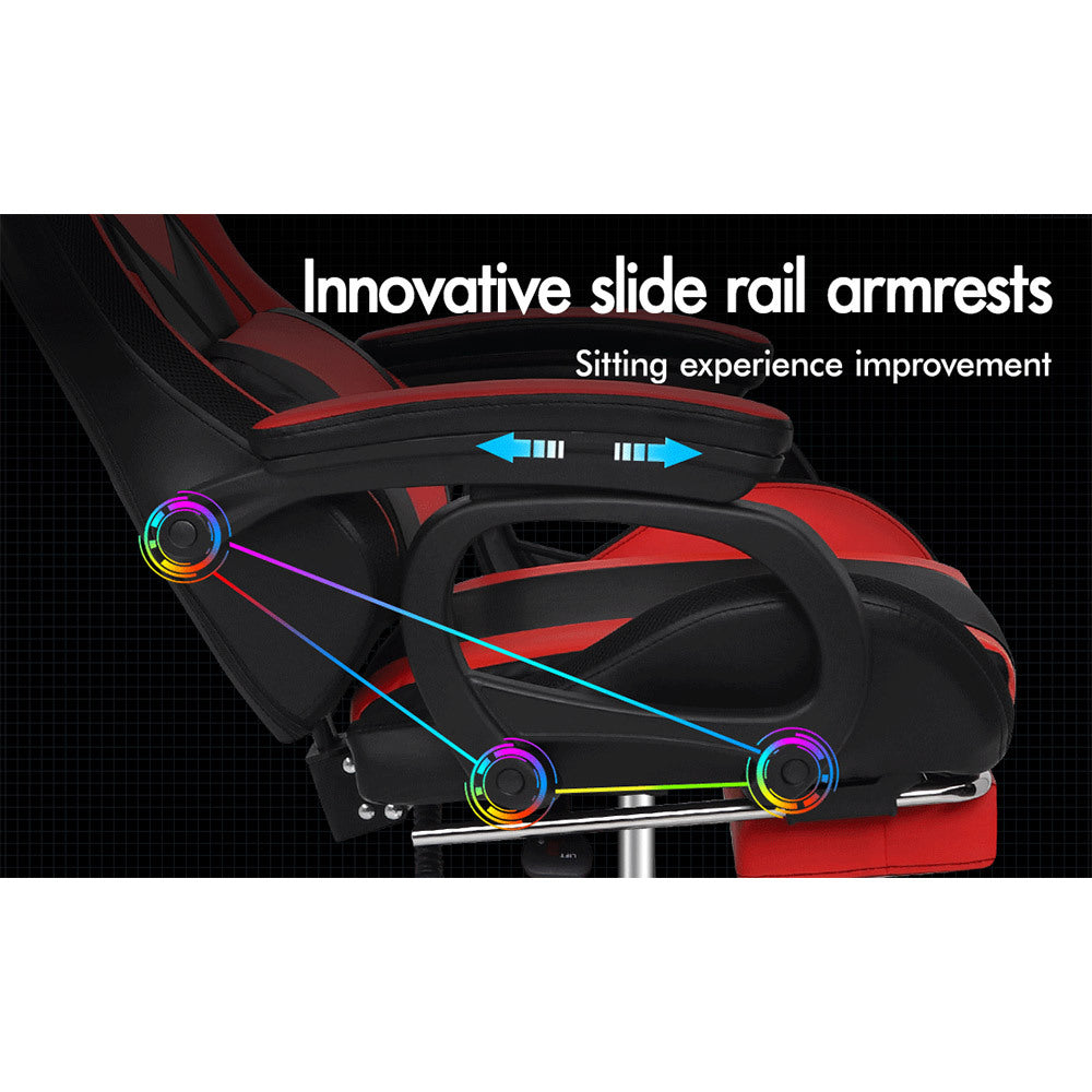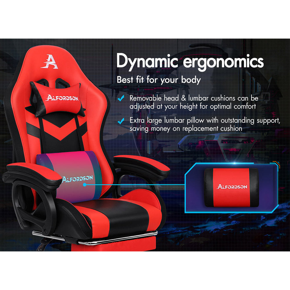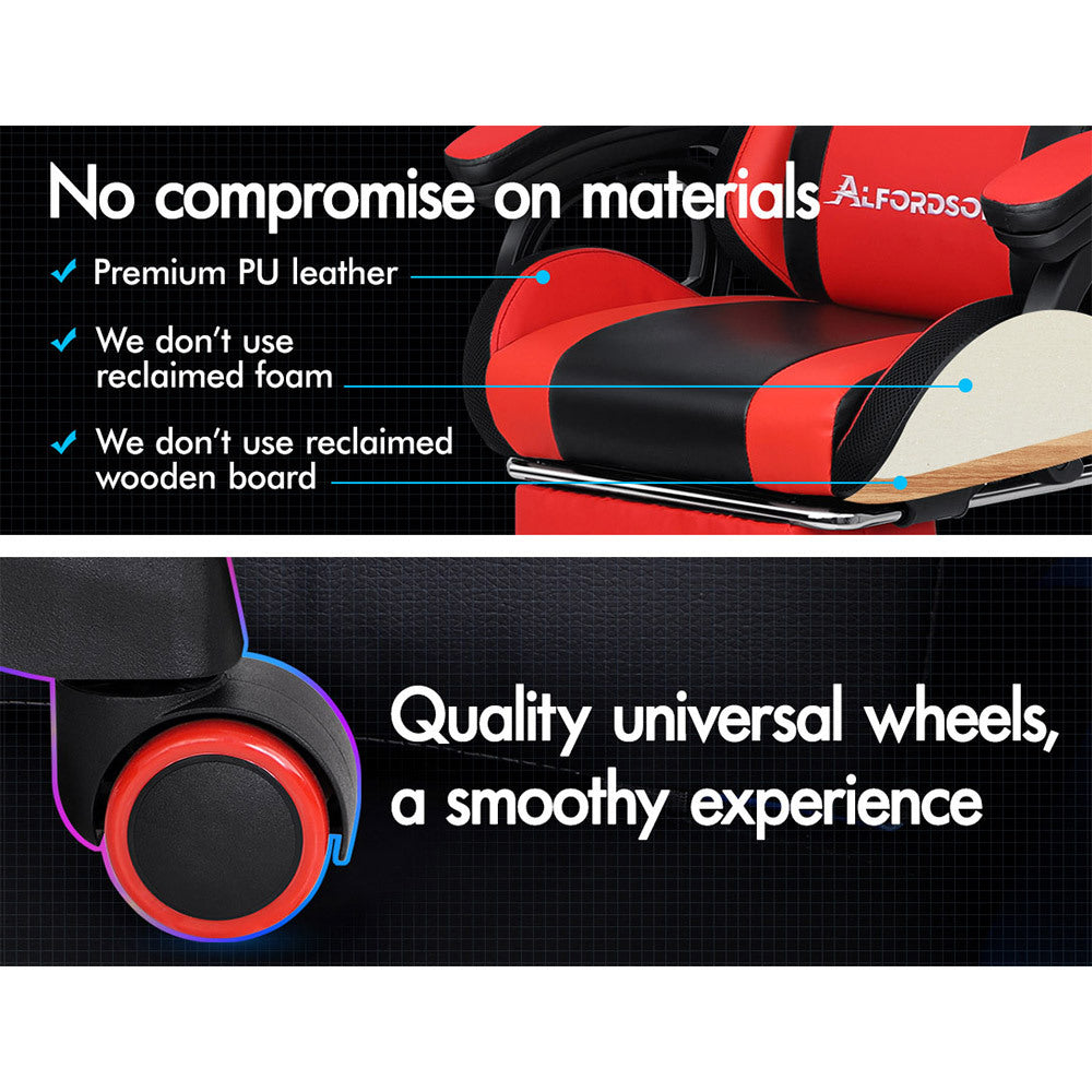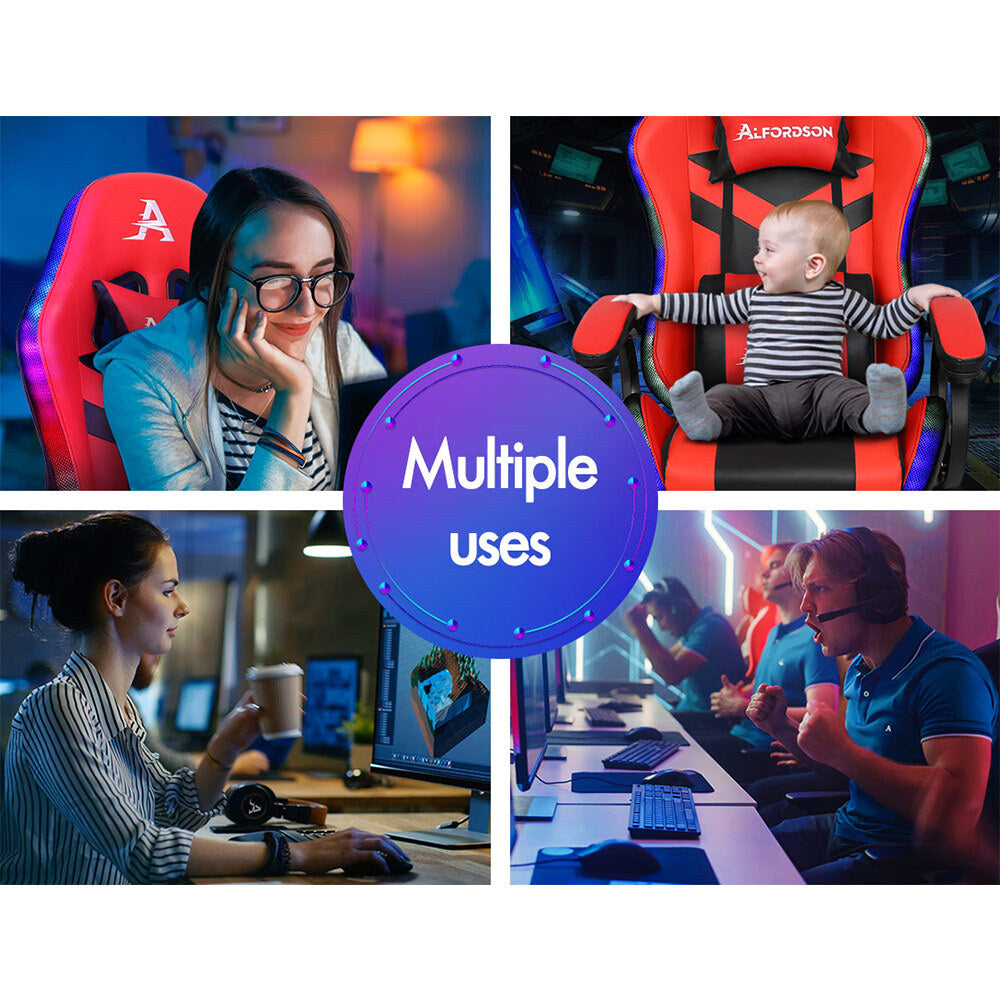 ALFORDSON Gaming Office Chair 12 RGB LED Massage Computer Seat Footrest Red